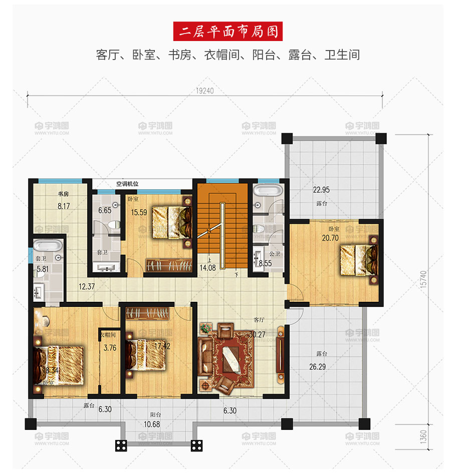 風格:歐式 | 層數:二層 | 結構形式:磚混結構 | 圖紙編號:YH-A-2070 |