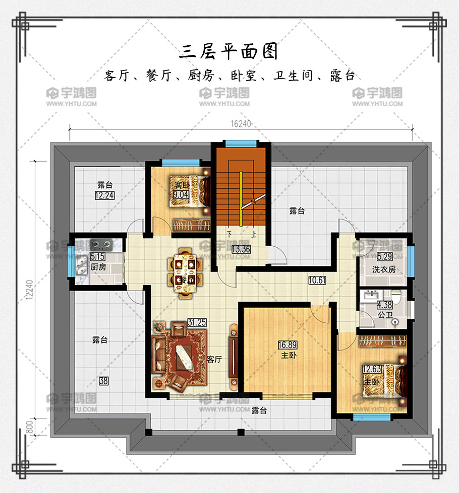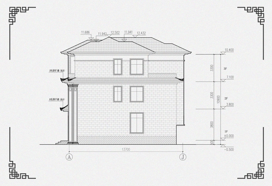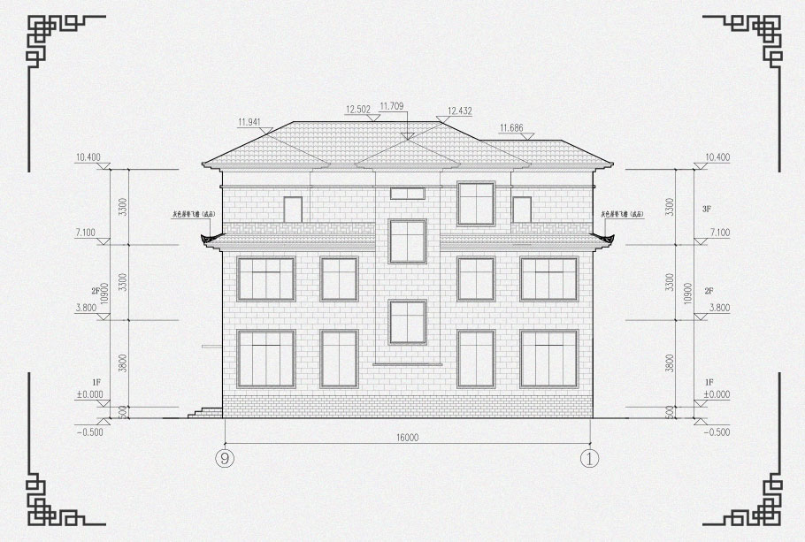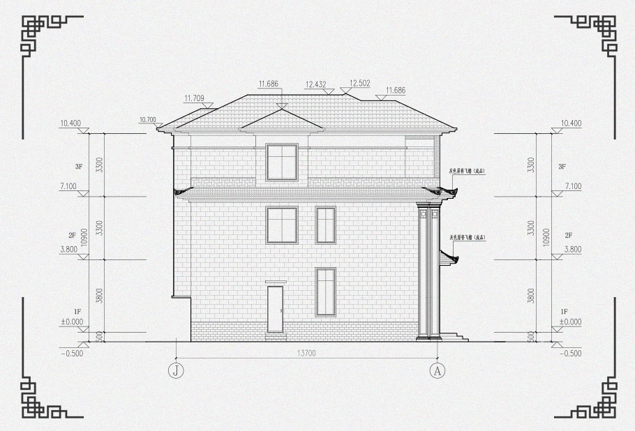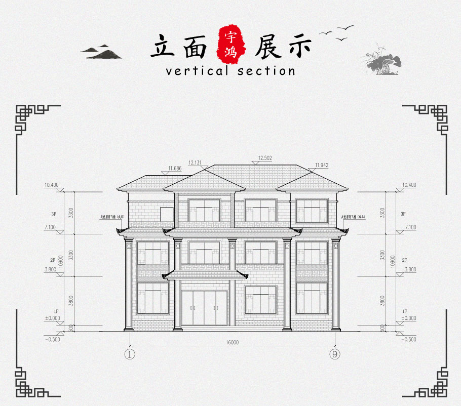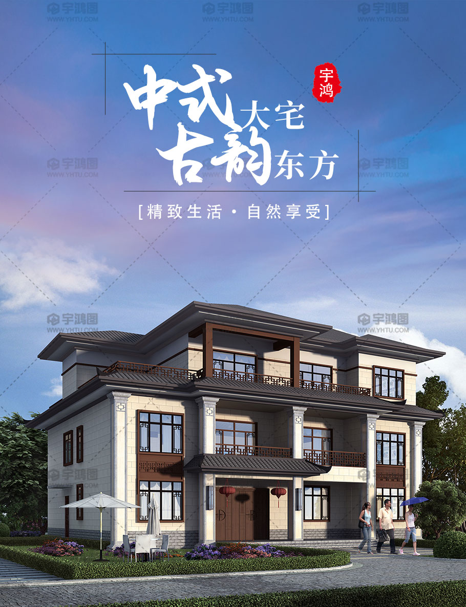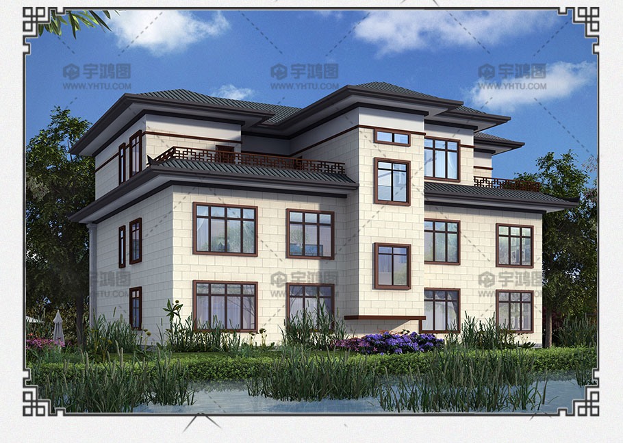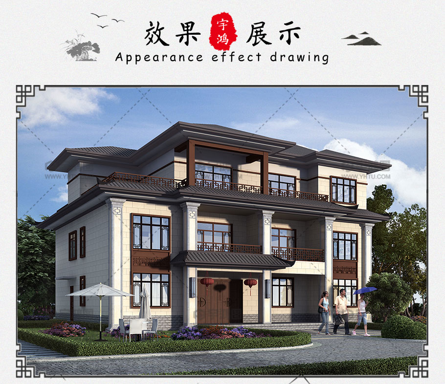 成品圖紙>經(jīng)典中式農(nóng)村三層40萬小別墅設(shè)計圖紙及效果圖