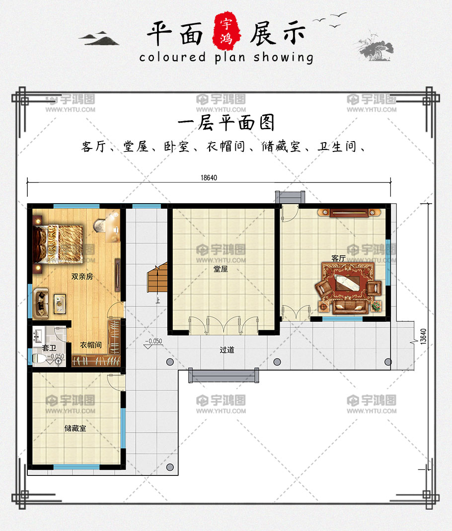 本案簡介: 造價25萬帶堂屋古典優雅中式別墅設計圖紙及效果圖