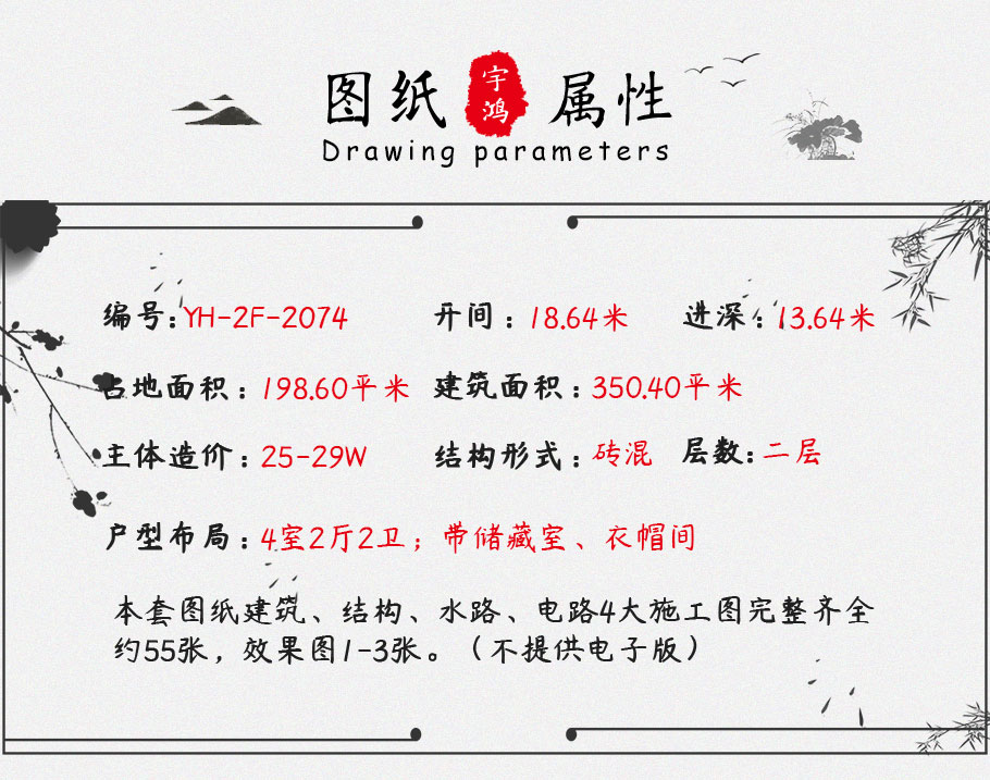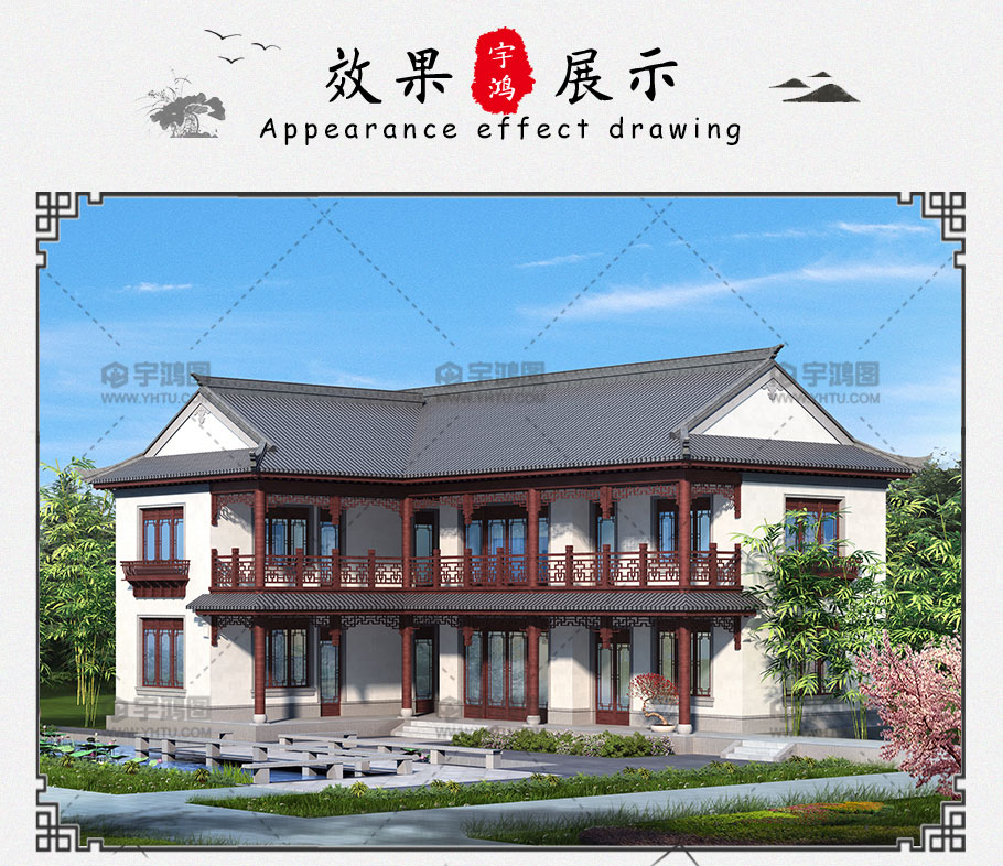 風格:中式 層數:二層 結構形式:磚混結構 圖紙編號:YH-A-2074