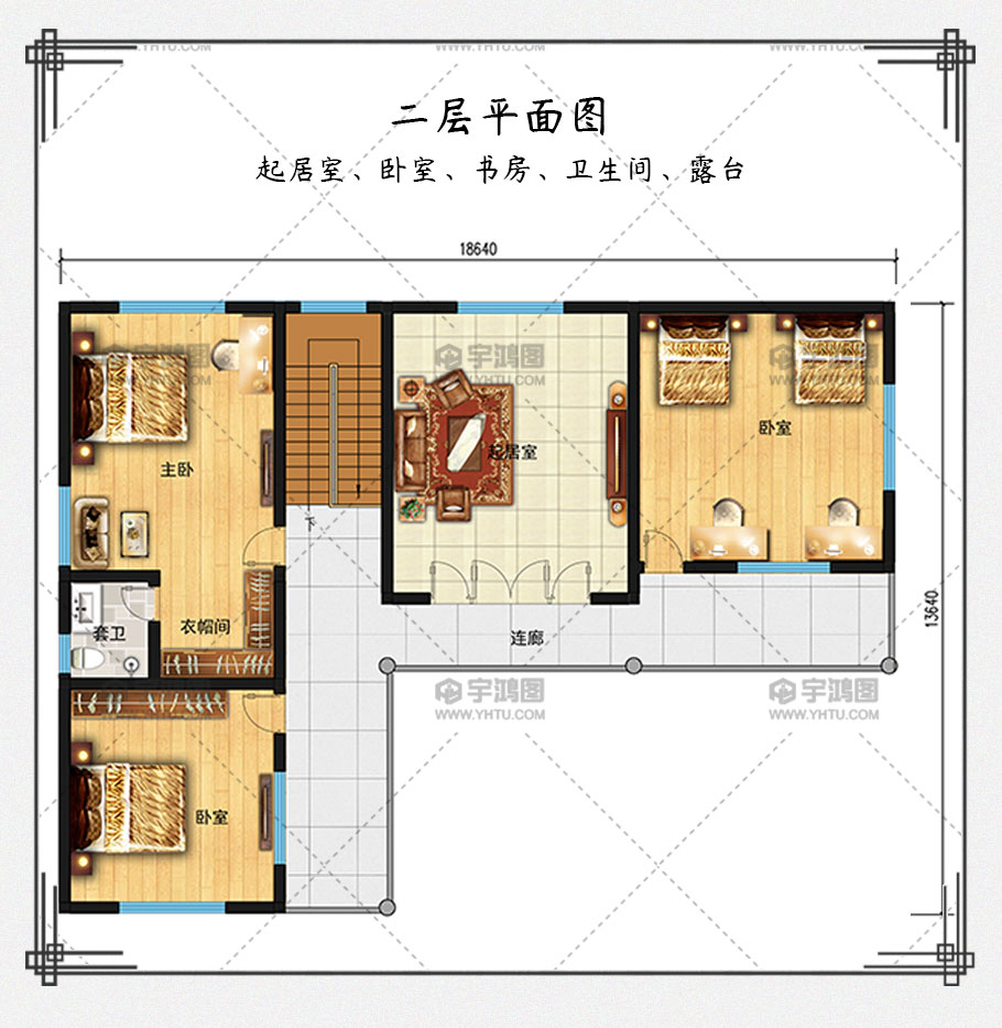 開間:18.64米 進深:13.64米 占地面積:198.6平方米 建筑面積:350.4平方米