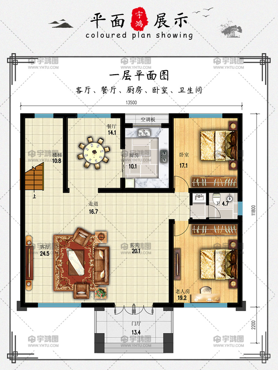 開間:13.5米 | 進(jìn)深:14米 | 占地面積:159.3平方米 | 建筑面積:301平方米 |