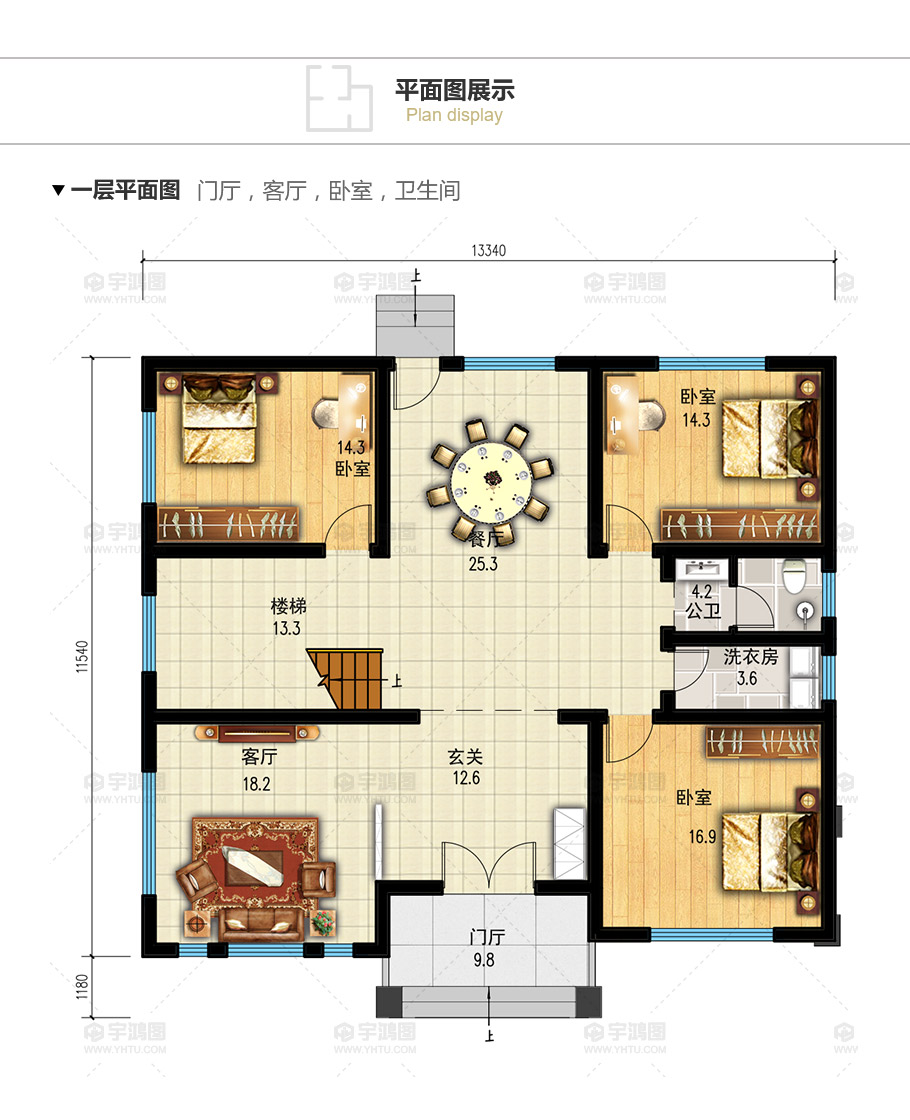 開(kāi)間:13.34米 | 進(jìn)深:12.72米 | 占地面積:147.9平方米 | 建筑面積:291平方米 |