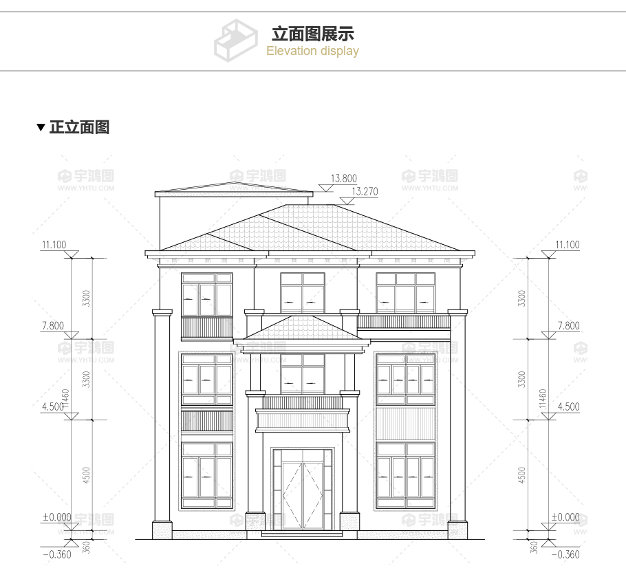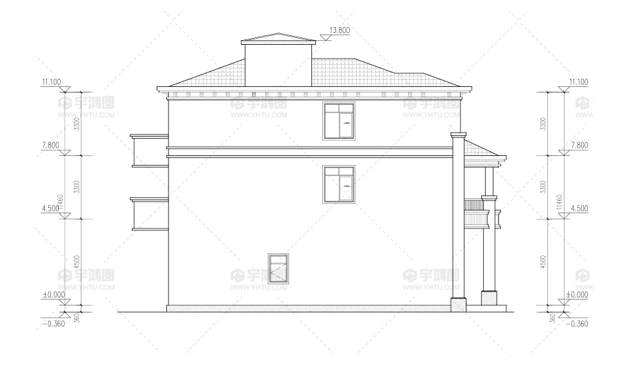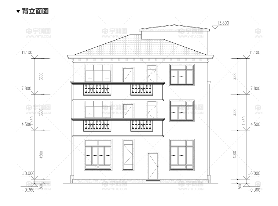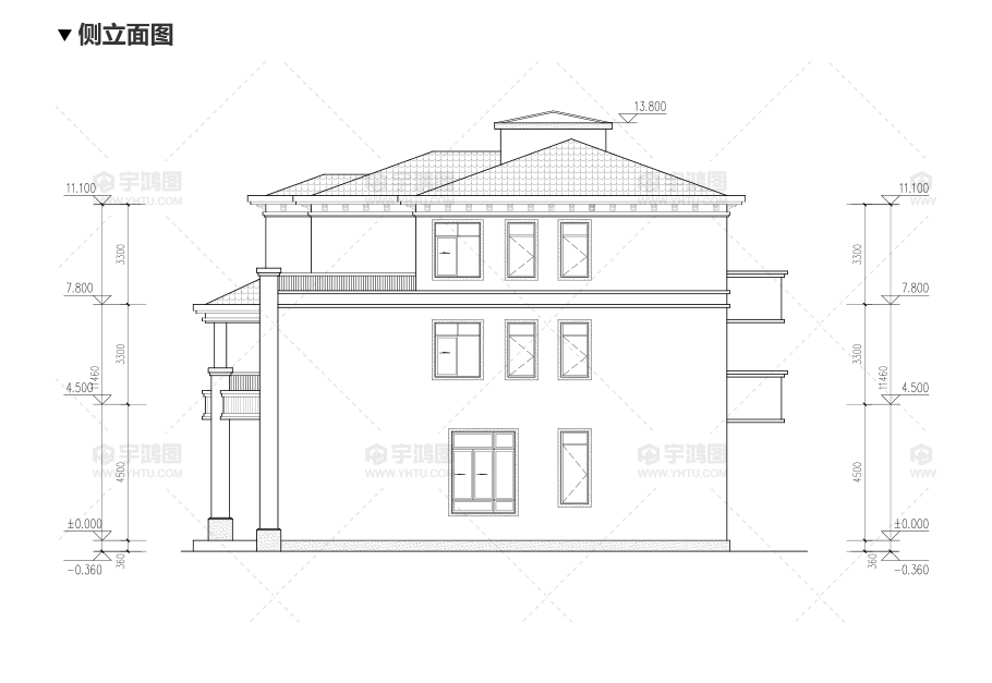建筑立面圖:東立面圖,西立面圖,南立面圖,北立面圖,剖面圖;