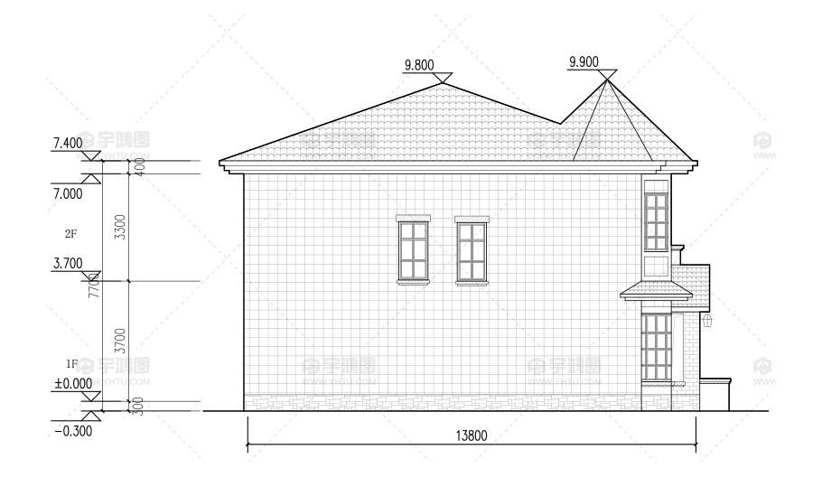 建筑立面圖:東立面圖,西立面圖,南立面圖,北立面圖,剖面圖;