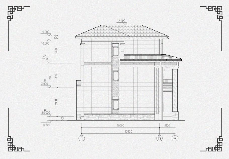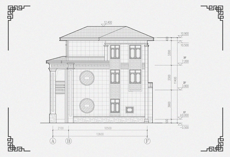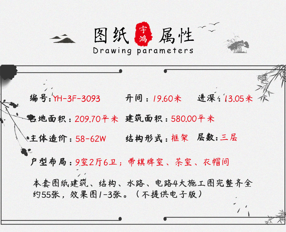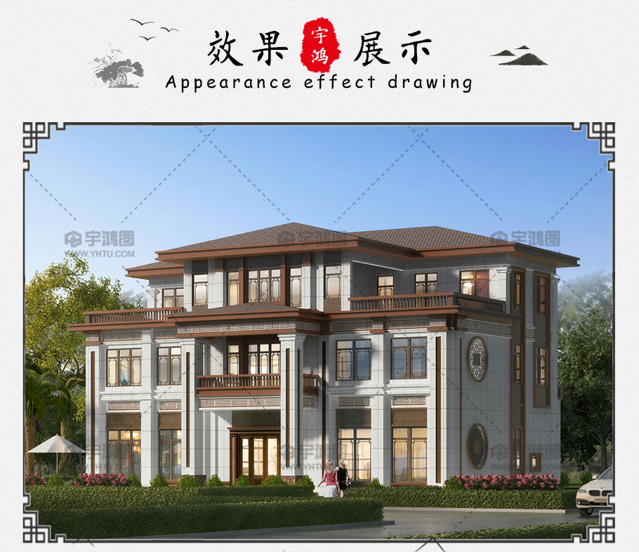 本案簡介: 高端中式風格三層別墅設計圖紙