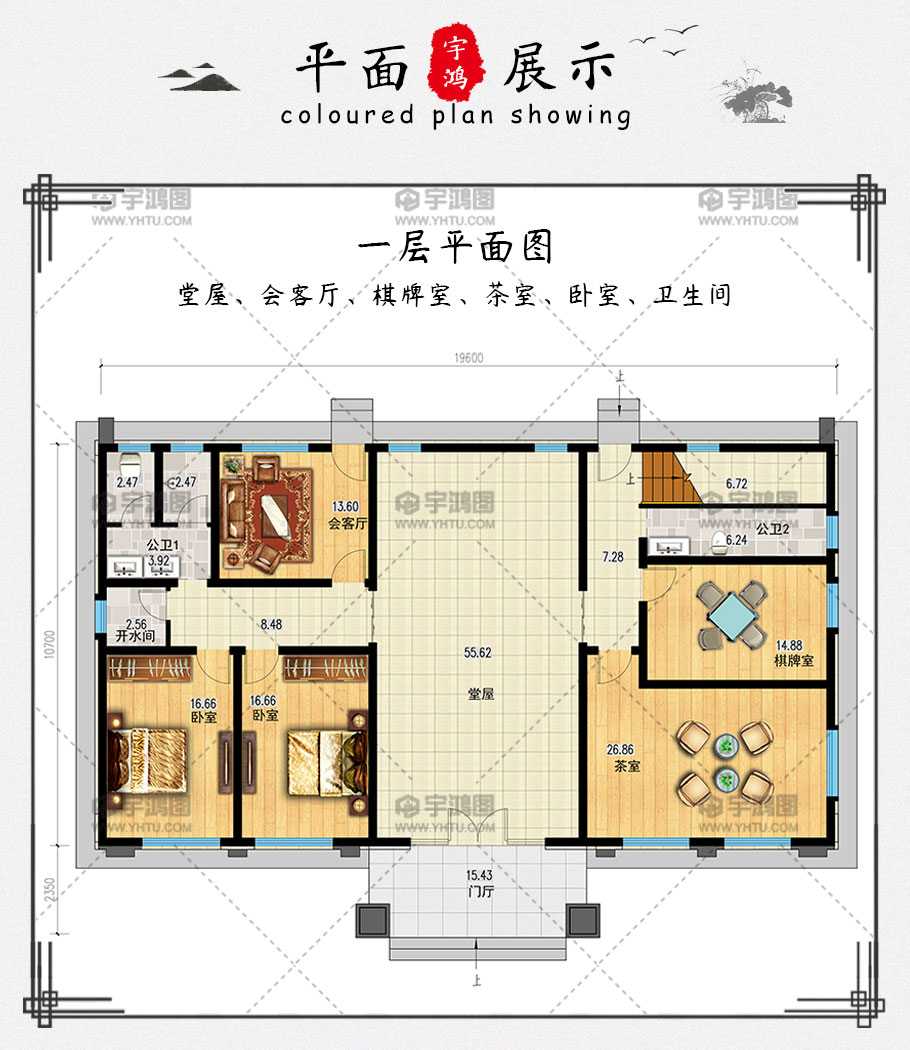 開間:19.6米 進深:13.05米 占地面積:209.7平方米 建筑面積:580平方米