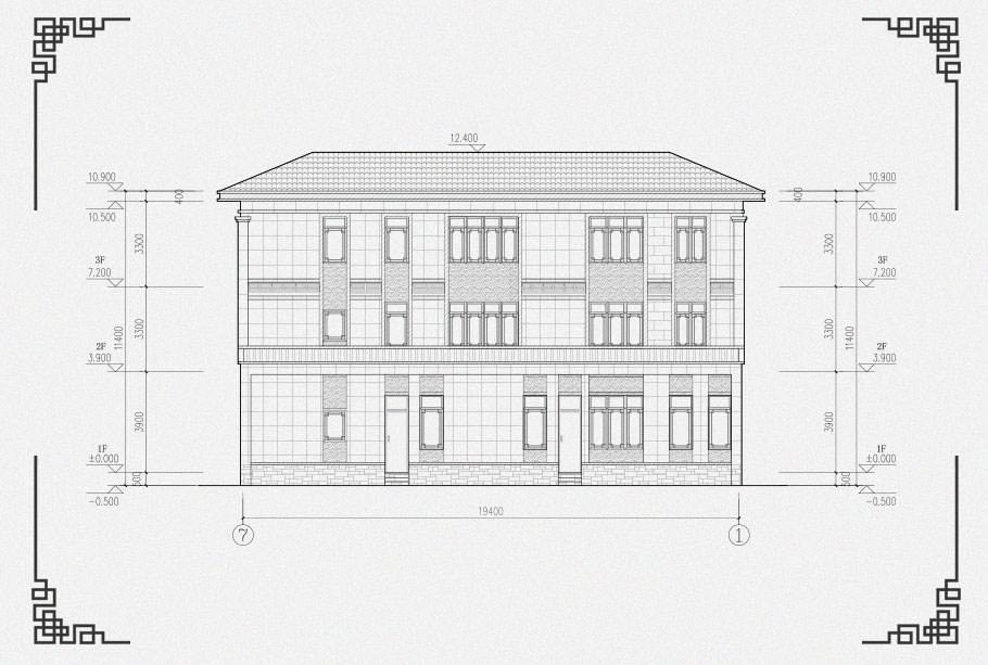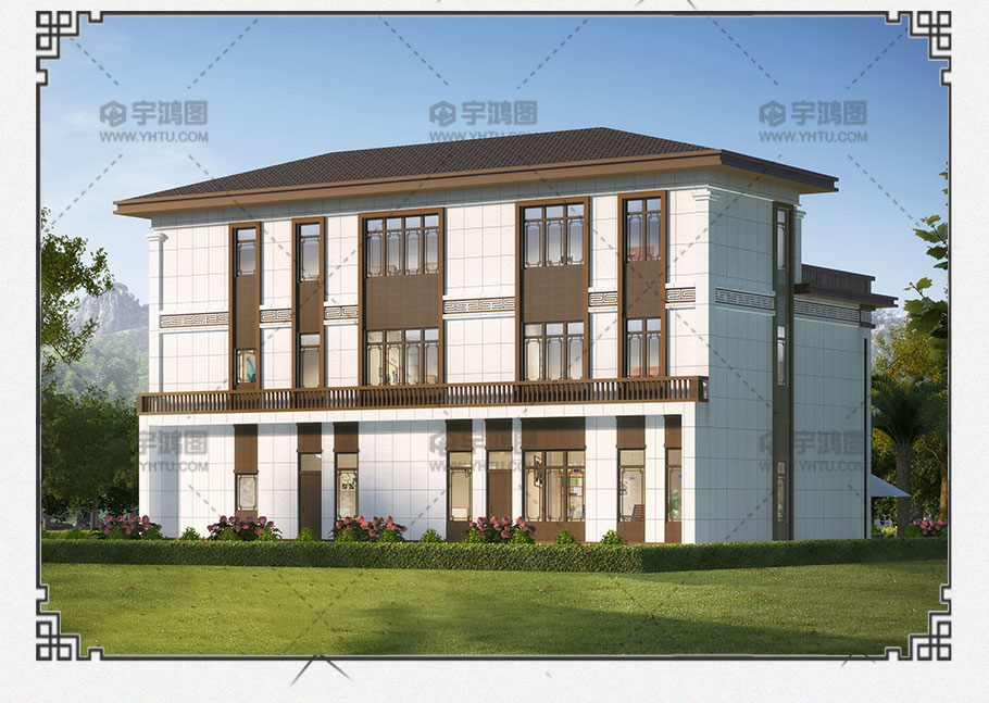 風格:中式 層數:三層 結構形式:框架結構 圖紙編號:YH-A-3093