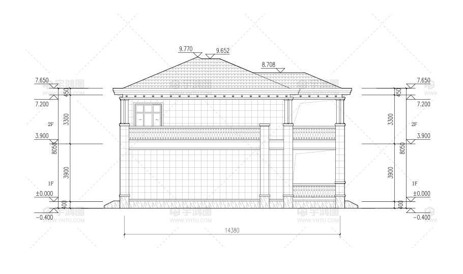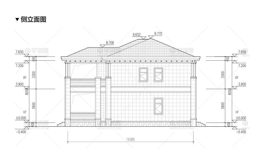 建筑立面圖:東立面圖,西立面圖,南立面圖,北立面圖,剖面圖;