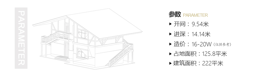 開(kāi)間:9.54米 | 進(jìn)深:14.14米 | 占地面積:125.8平方米 | 建筑面積:222平方米 |