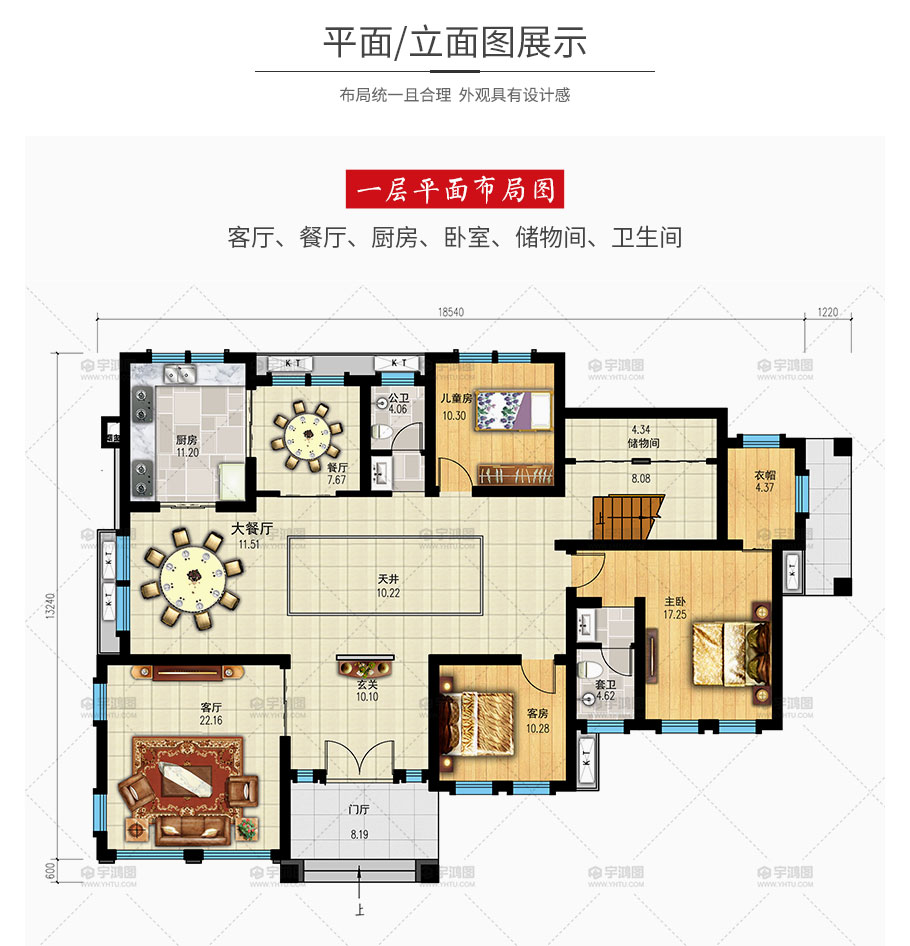 開(kāi)間:19.76米 | 進(jìn)深:13.84米 | 占地面積:197.8平方米 | 建筑面積:480.6平方米 |