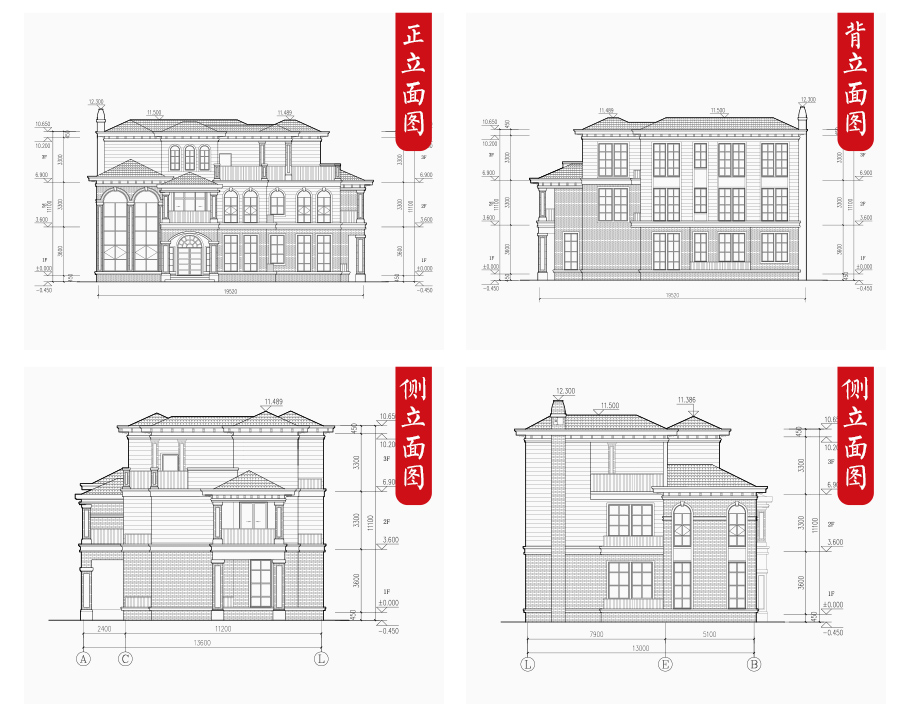 建筑圖: | 建筑平面圖:一層平面圖,二層平面圖,三層平面圖; 建筑立面圖:東立面圖,西立面圖,南立面圖,北立面圖,剖面圖; 大樣圖:樓梯詳圖,細(xì)部大樣,門(mén)窗大樣 |