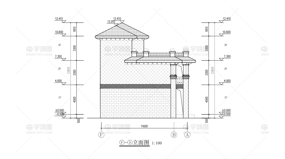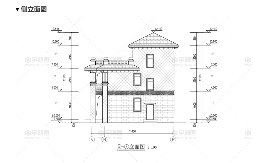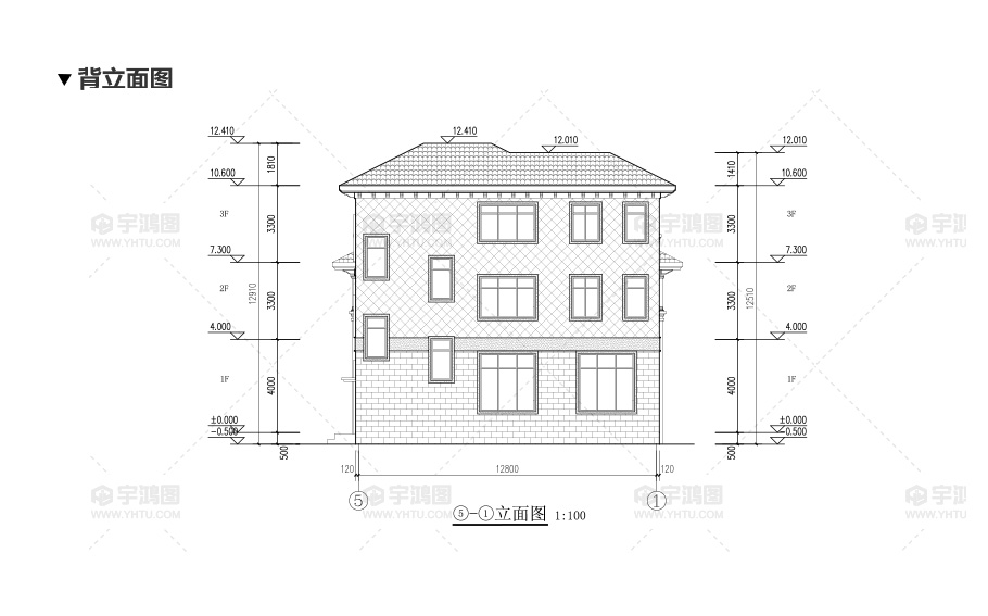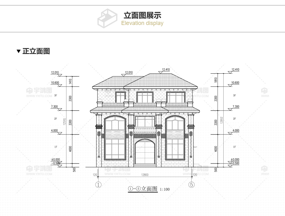 建筑立面圖:東立面圖,西立面圖,南立面圖,北立面圖,剖面圖;