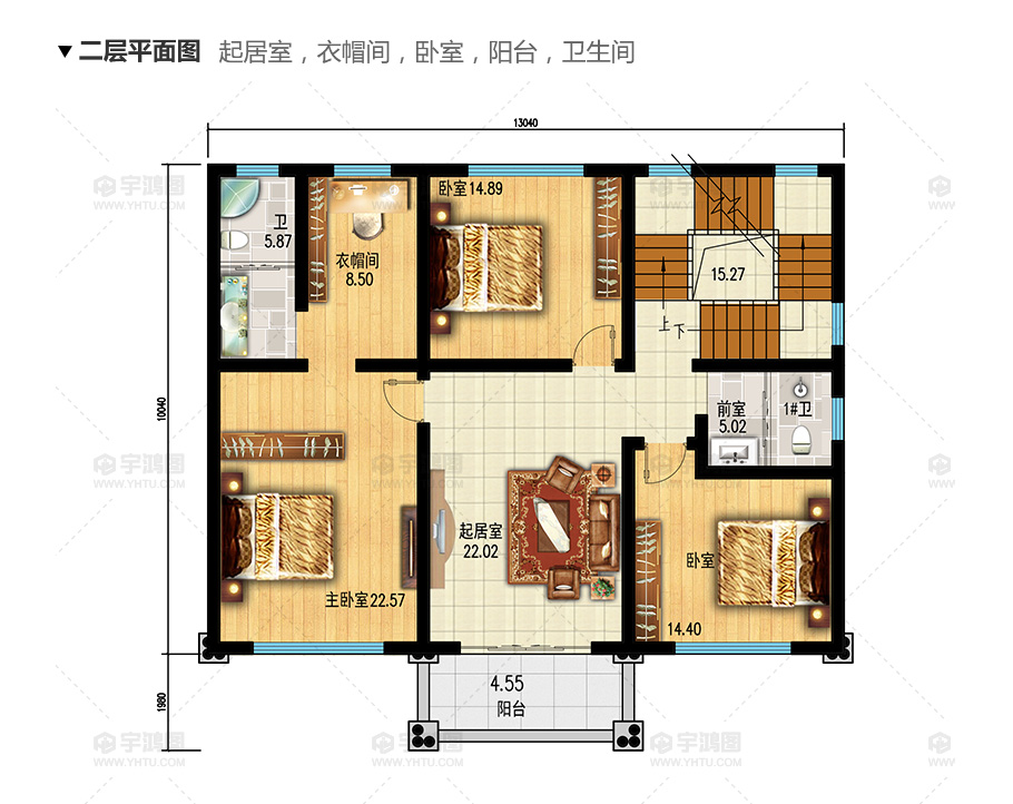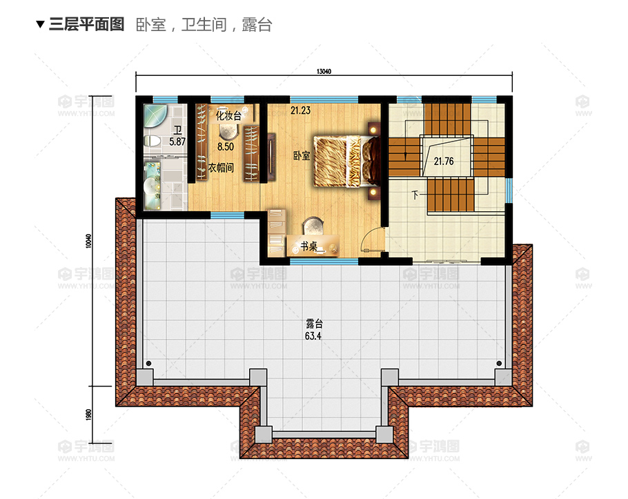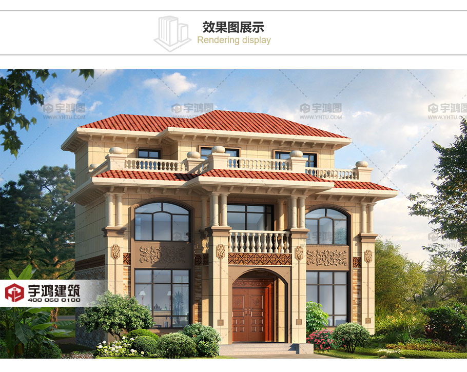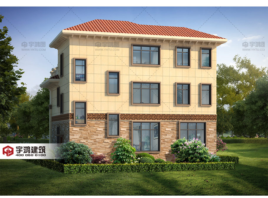 漂亮的三層帶露臺新農(nóng)村別墅圖紙