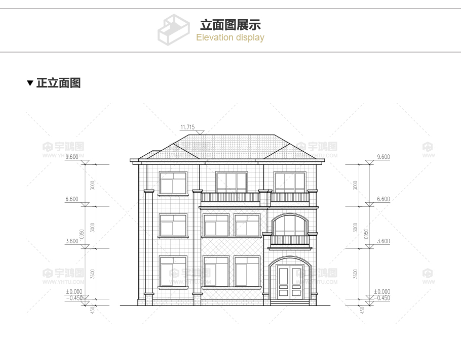 風格:歐式 | 層數:三層 | 結構形式:框架結構 | 圖紙編號:YH-A-3087 |