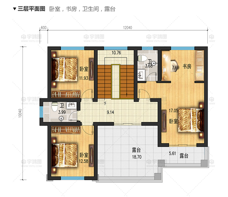 開間:12.64米 | 進深:10.64米 | 占地面積:118.6平方米 | 建筑面積:333.1平方米 |