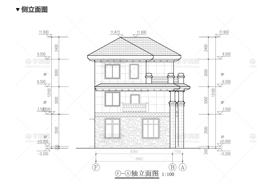 風格:歐式 | 層數:三層 | 結構形式:磚混結構 | 圖紙編號:YH-A-3099 |