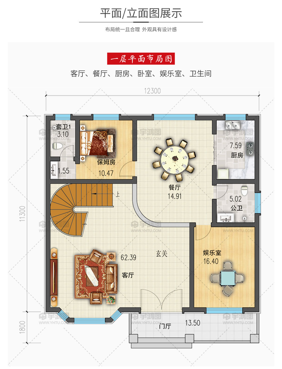 開間:12.3米 | 進深:13.1米 | 占地面積:140.8平方米 | 建筑面積:288.7平方米 |