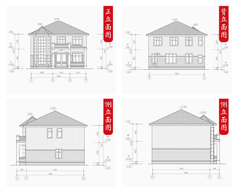 建筑圖: | 建筑平面圖:一層平面圖,二層平面圖; 建筑立面圖:東立面圖,西立面圖,南立面圖,北立面圖,剖面圖; 大樣圖:樓梯詳圖,細部大樣,門窗大樣 |