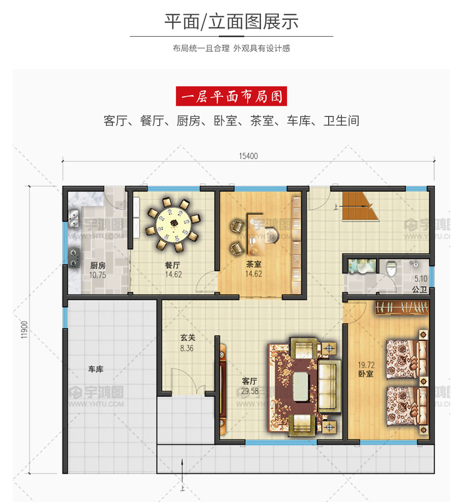 開間:15.4米 進深:11.9米 占地面積:169.7平方米 建筑面積:409.08平方米