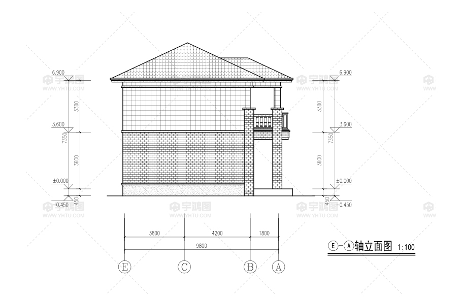 風格:簡歐 | 層數:二層 | 結構形式:磚混結構 | 圖紙編號:YH-A-2096 |