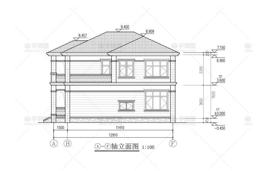 風格:歐式 | 層數:二層 | 結構形式:磚混結構 | 圖紙編號:YH-A-2097 |