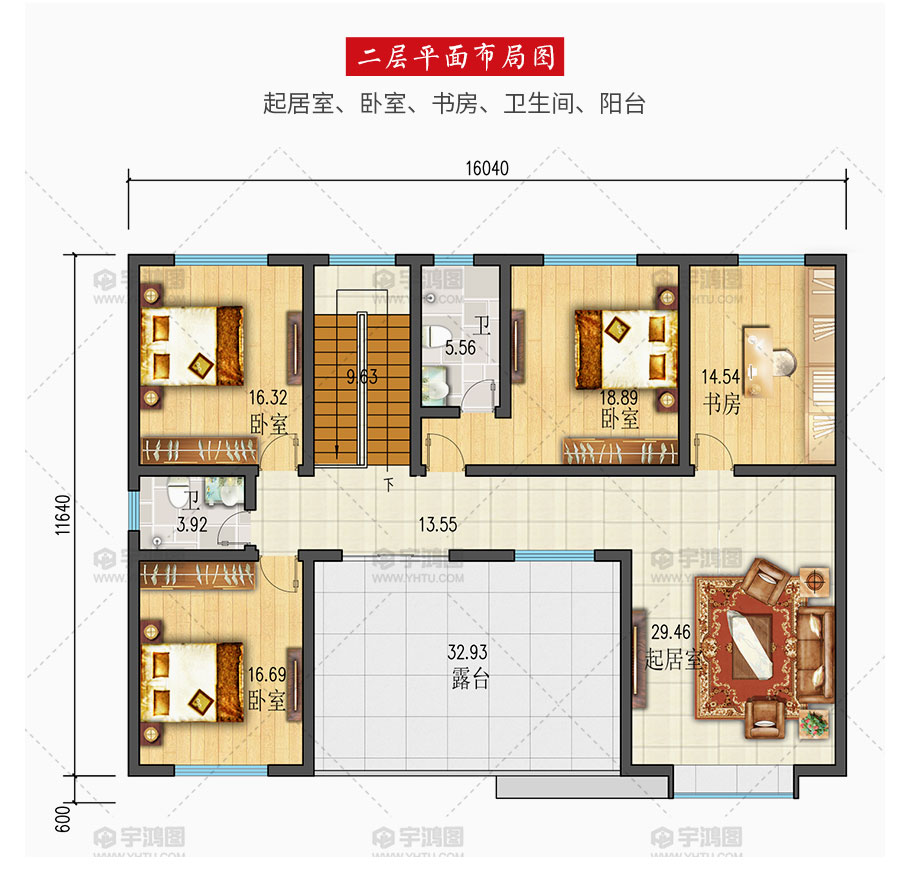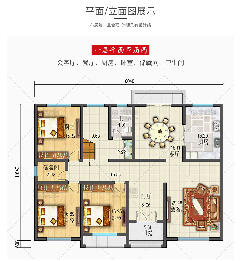 開間:16.04米 進深:12.24米 占地面積:191平方米 建筑面積:340.48平方米