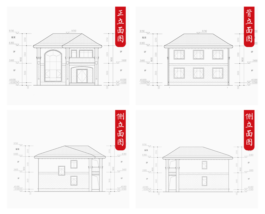 建筑圖: | 建筑平面圖:一層平面圖,二層平面圖; 建筑立面圖:東立面圖,西立面圖,南立面圖,北立面圖,剖面圖; 大樣圖:樓梯詳圖,細(xì)部大樣,門(mén)窗大樣 |