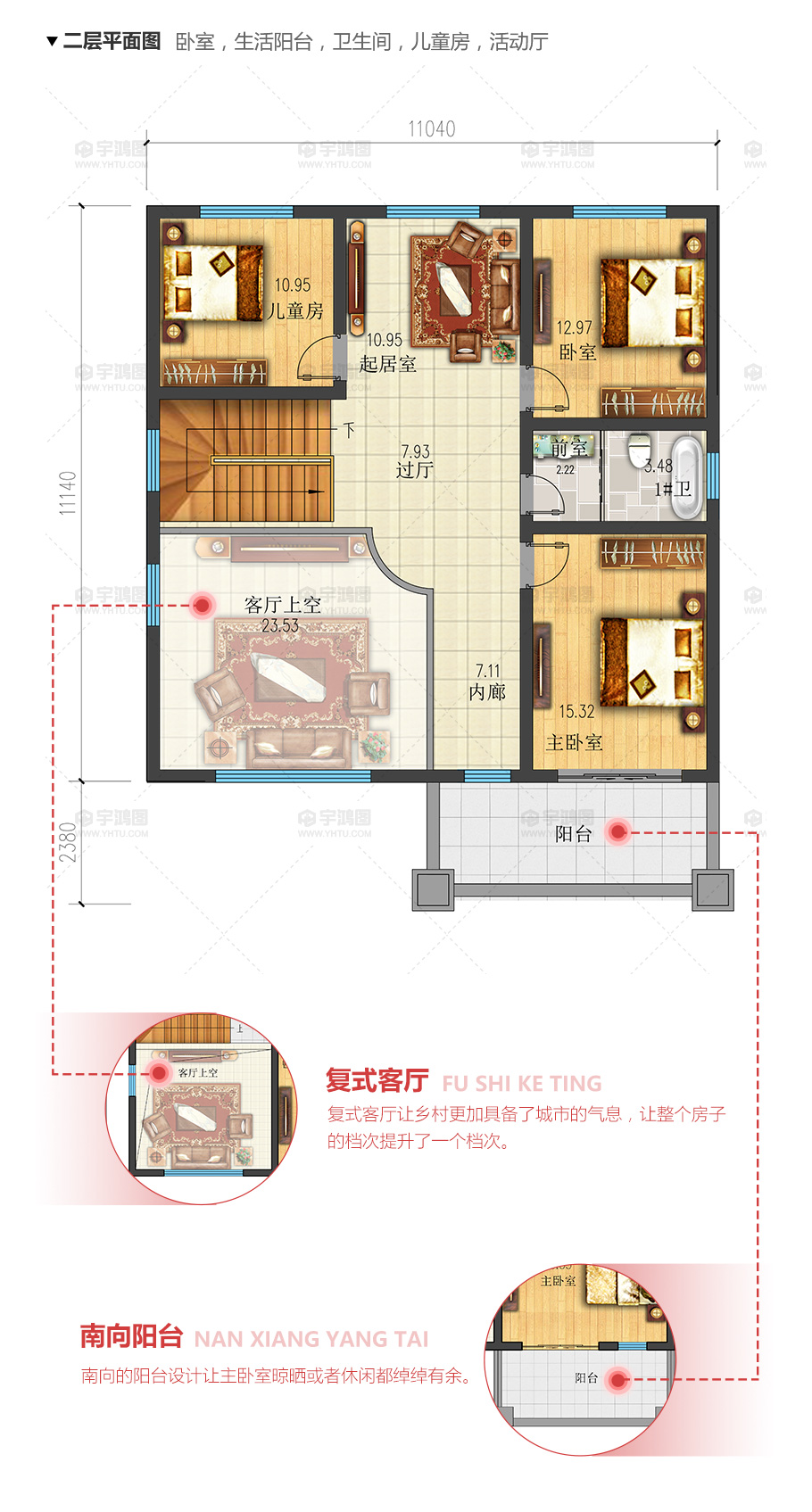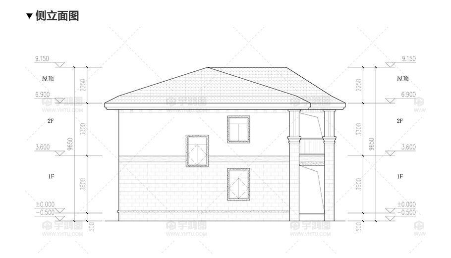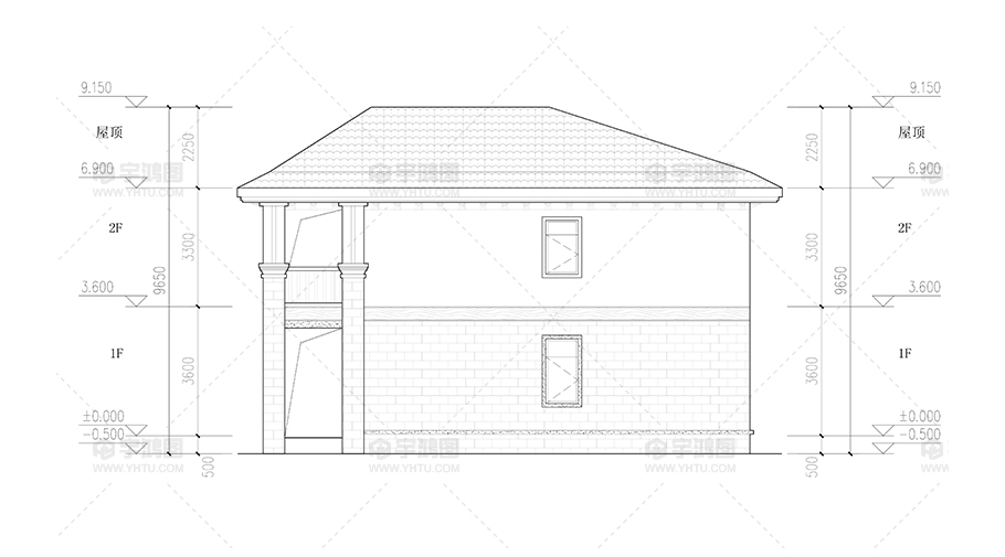 風格:歐式 | 層數:二層 | 結構形式:磚混結構 | 圖紙編號:YH-A-2113 |