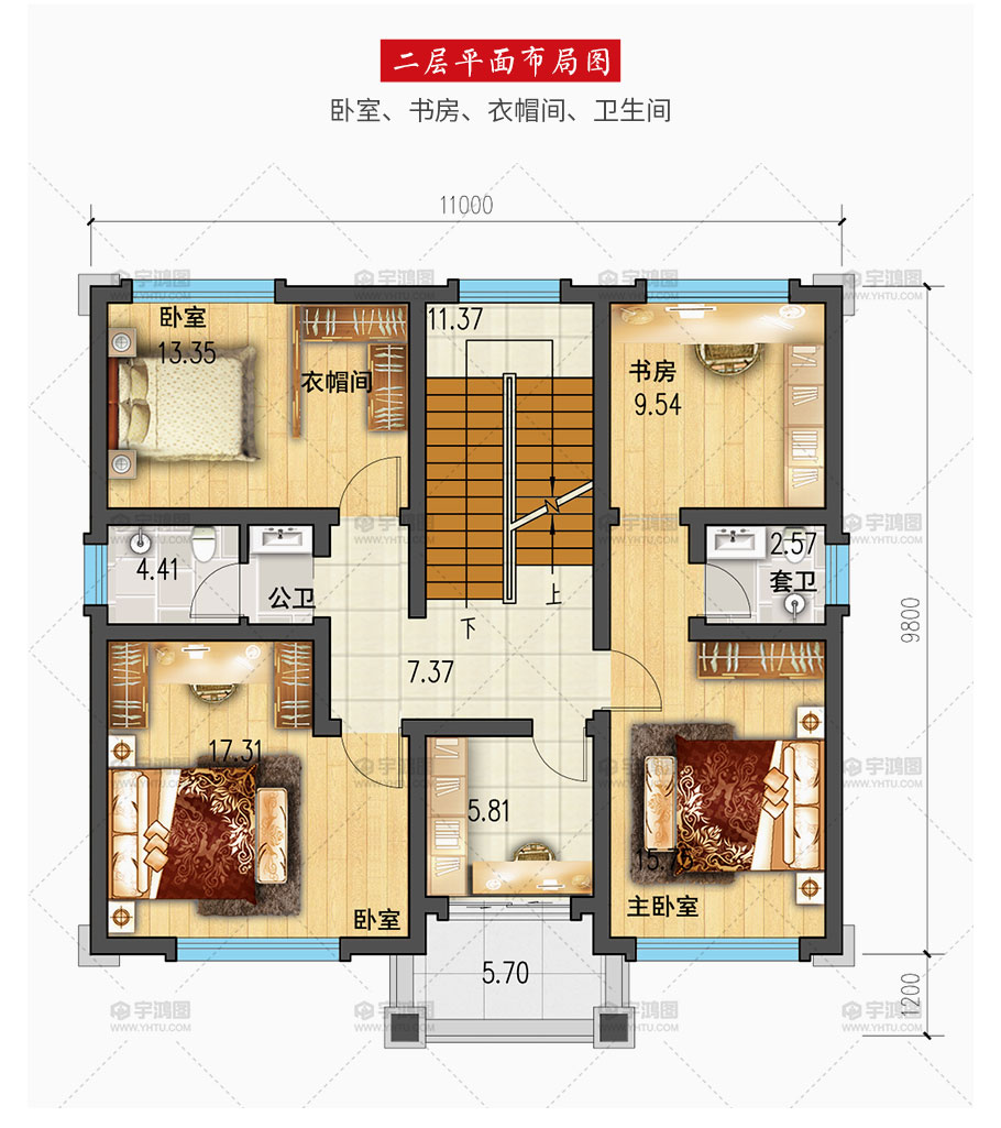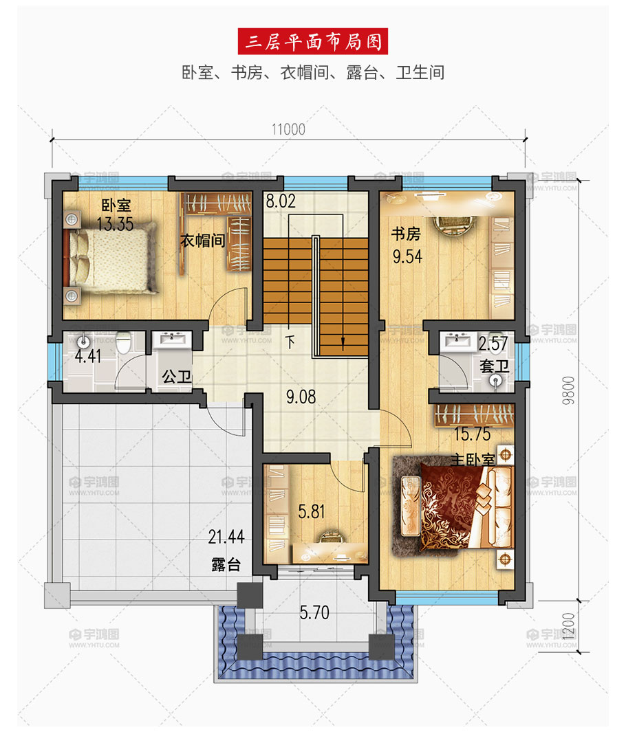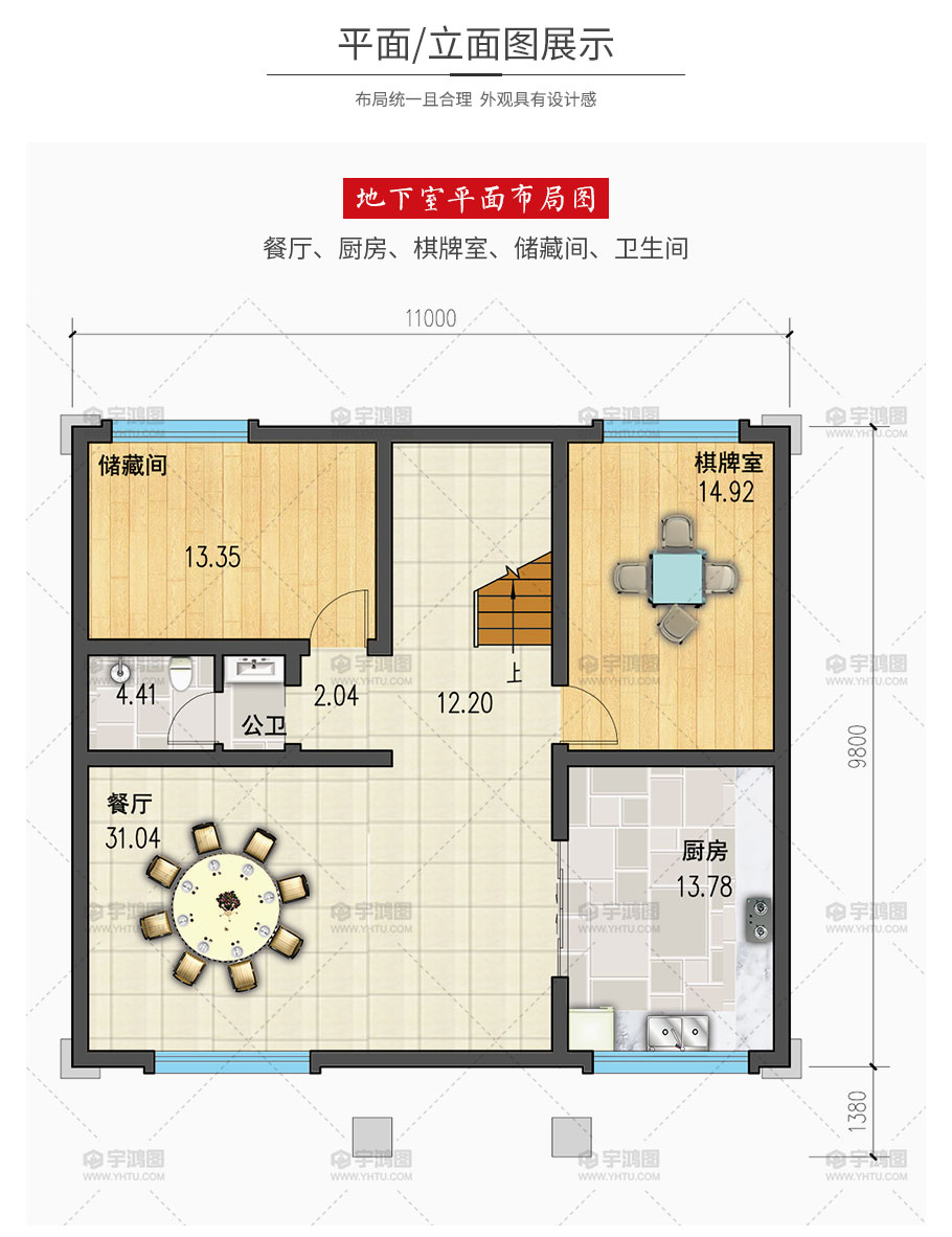 開間:11米 | 進深:13.23米 | 占地面積:106.3平方米 | 建筑面積:406.1平方米 |