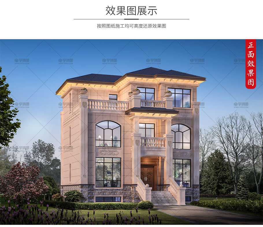 風格:歐式 | 層數:三層 | 結構形式:磚混結構 | 圖紙編號:YH-A-3114 |