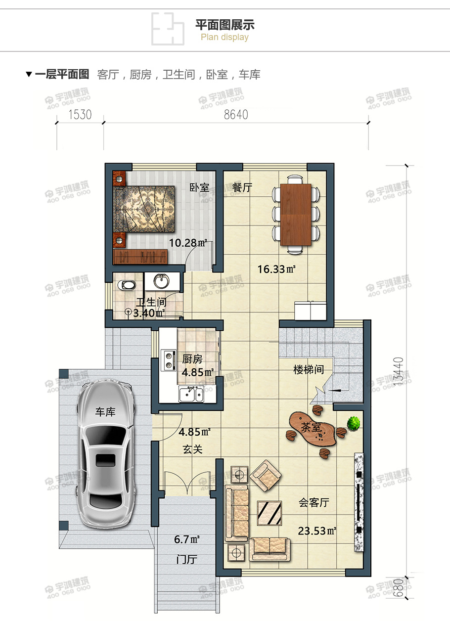 成品圖紙>10x14米帶車庫書房鄉(xiāng)村別墅設計圖紙