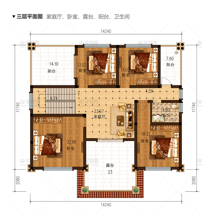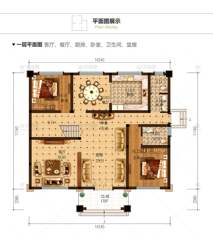 開間:14.24米 | 進深:13.82米 | 占地面積:167.2平方米 | 建筑面積:487平方米 |