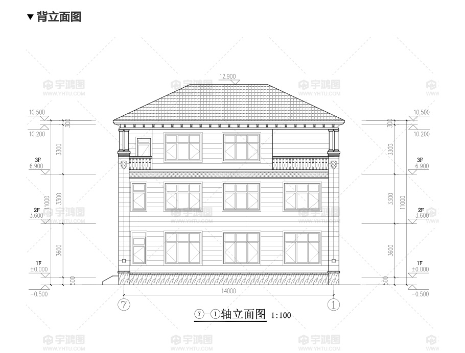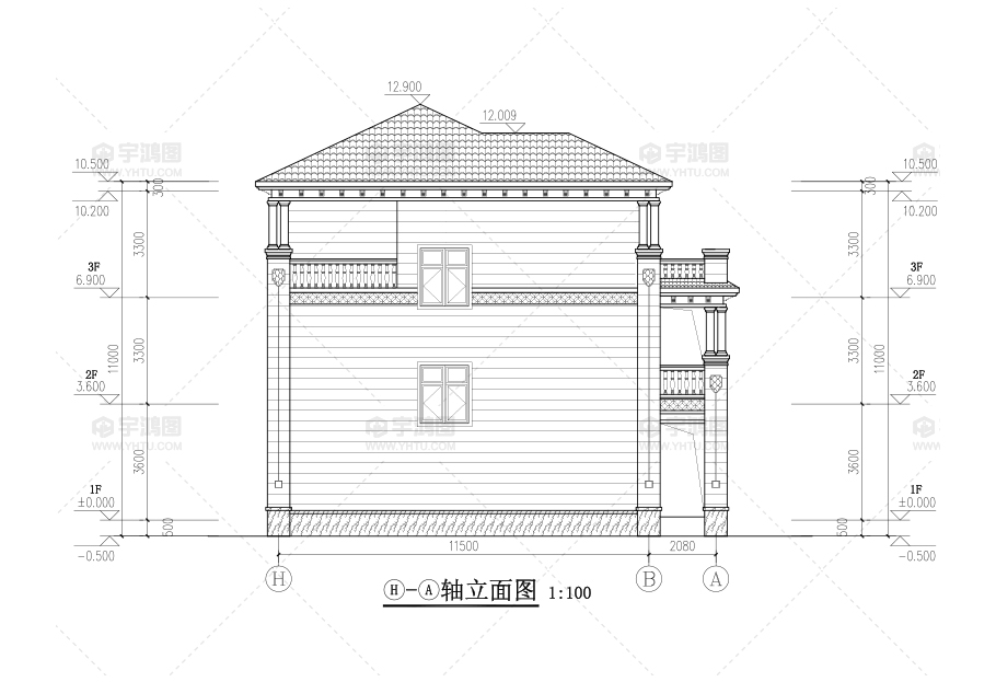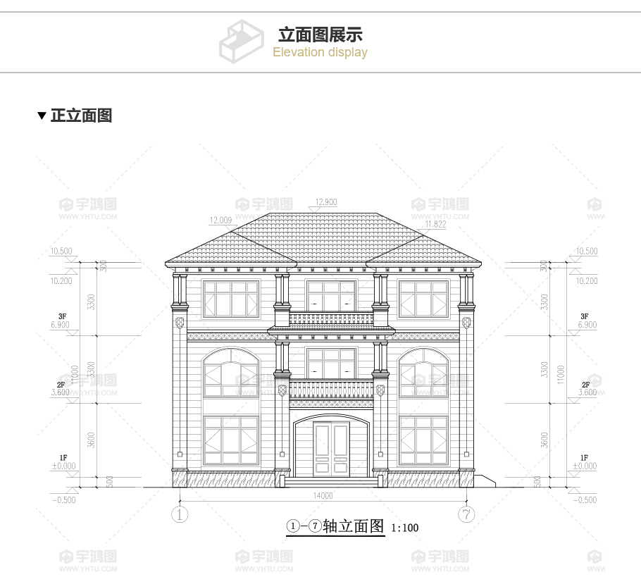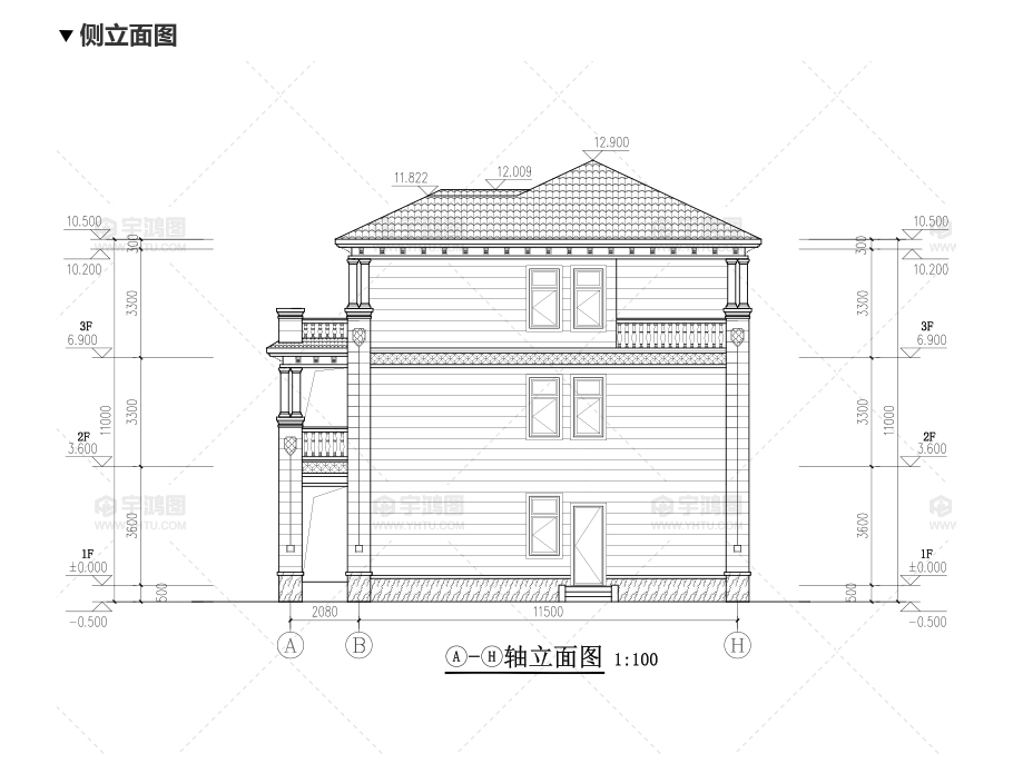 風格:歐式 | 層數:三層 | 結構形式:磚混結構 | 圖紙編號:YH-A-3116 |
