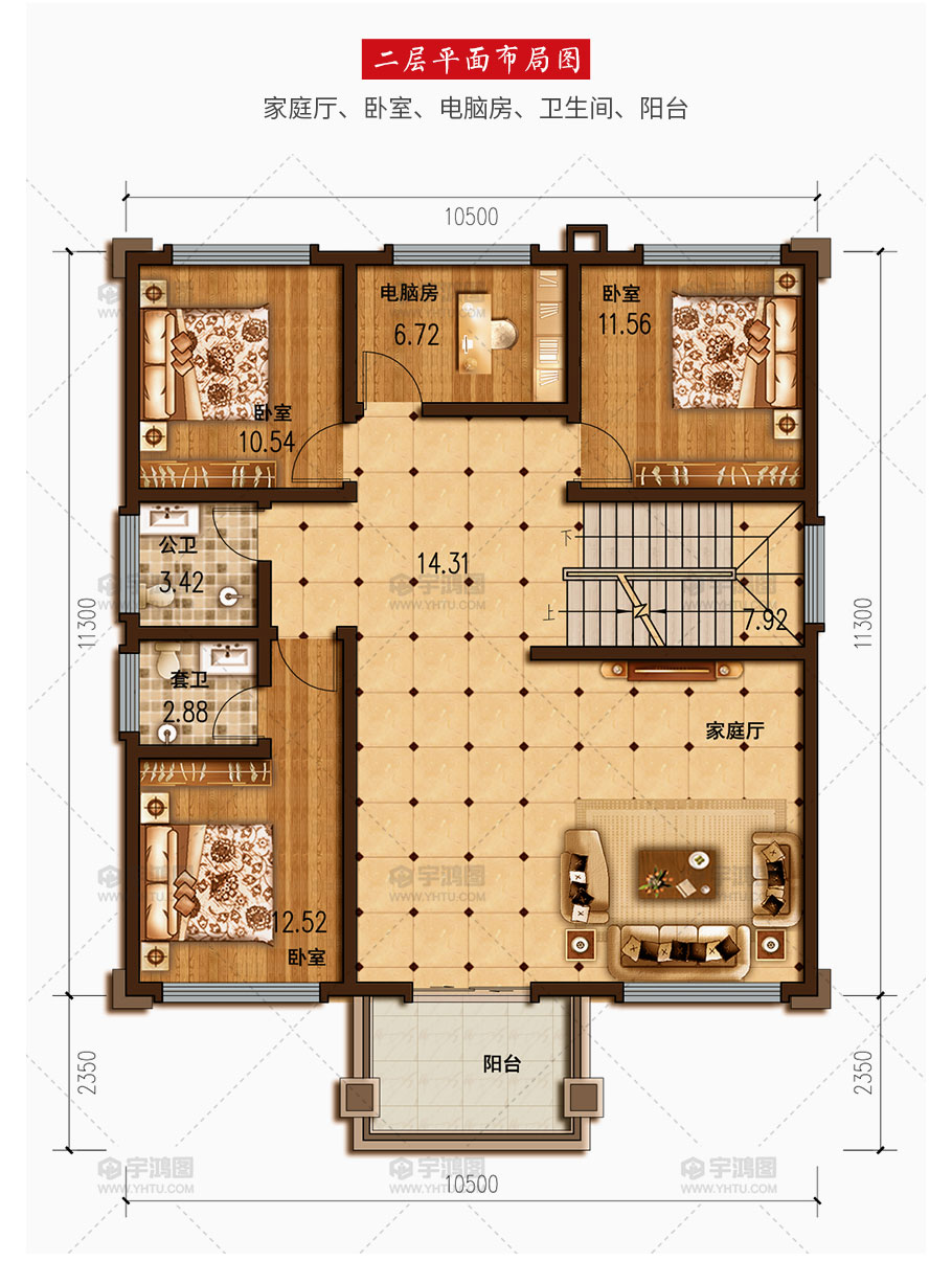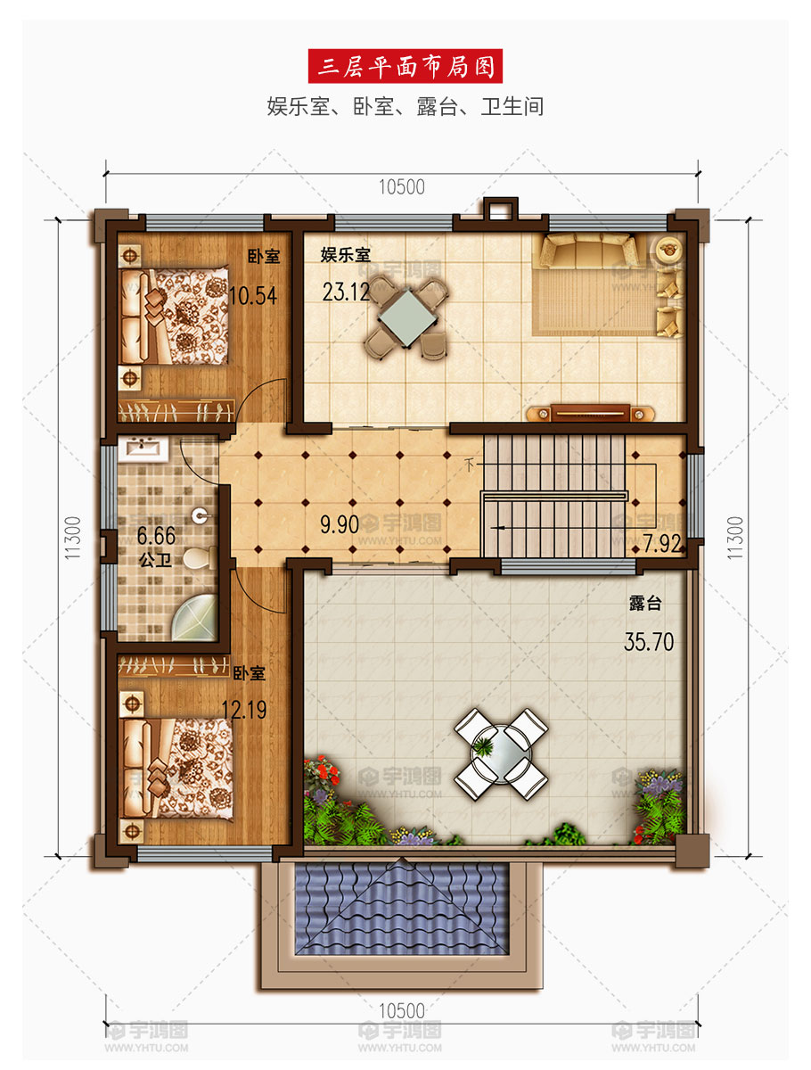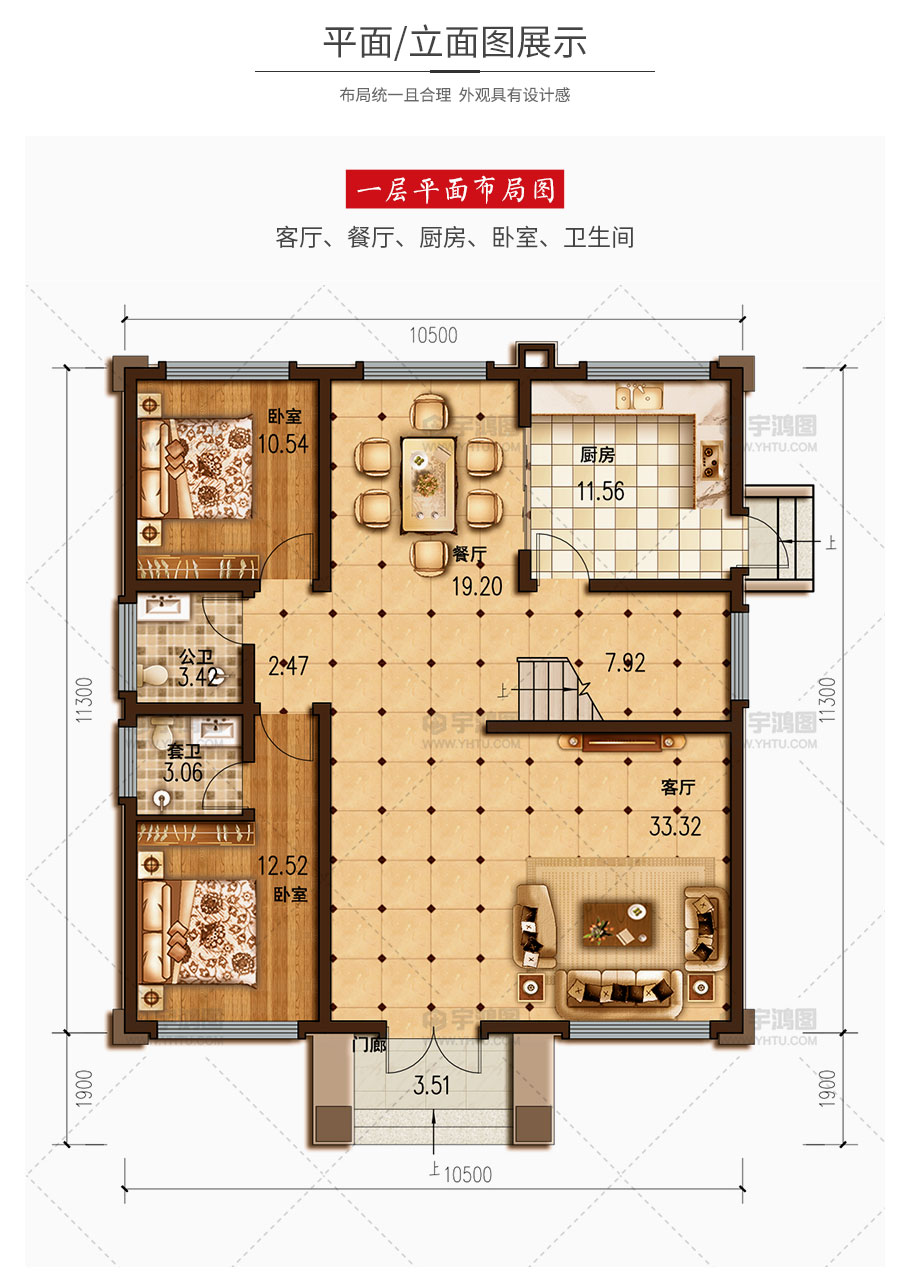 開間:10.5米 | 進深:13.2米 | 占地面積:118.65平方米 | 建筑面積:325.9平方米 |
