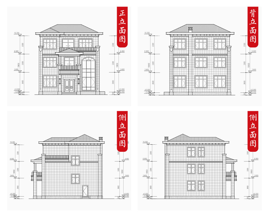 建筑圖: | 建筑平面圖:一層平面圖,二層平面圖,三層平面圖; 建筑立面圖:東立面圖,西立面圖,南立面圖,北立面圖,剖面圖; 大樣圖:樓梯詳圖,細部大樣,門窗大樣 |