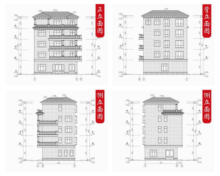 建筑圖: | 建筑平面圖:一層平面圖,二層平面圖,三層平面圖,四層平面圖; 建筑立面圖:東立面圖,西立面圖,南立面圖,北立面圖,剖面圖; 大樣圖:樓梯詳圖,細部大樣,門窗大樣 |