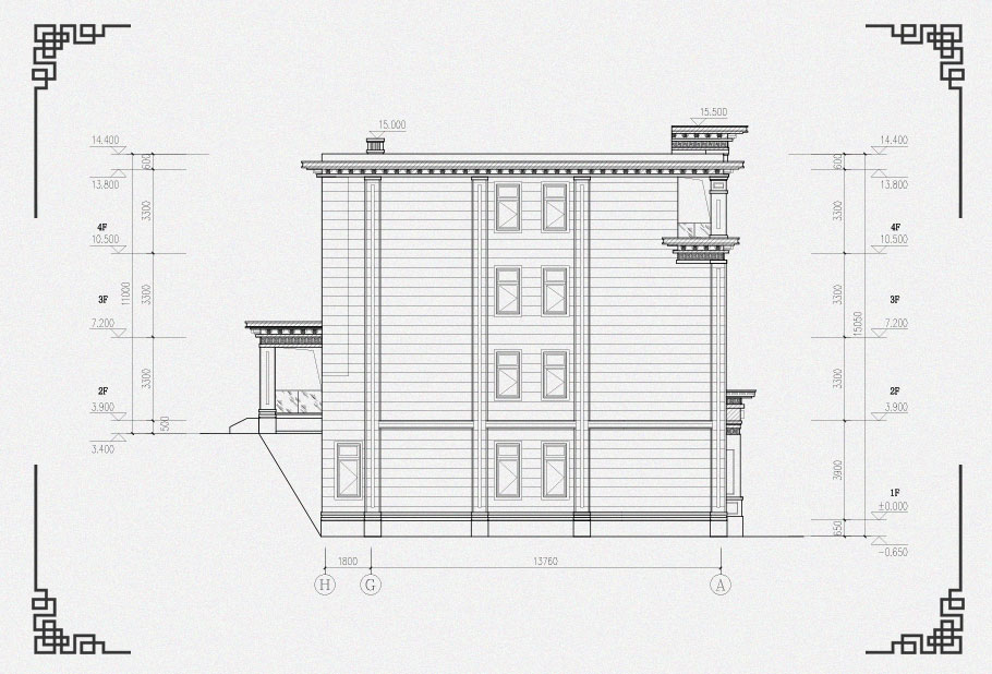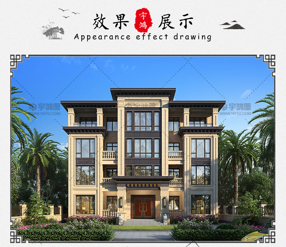 風格:中式 | 層數:四層 | 結構形式:框架結構 | 圖紙編號:YH-A-4021 |