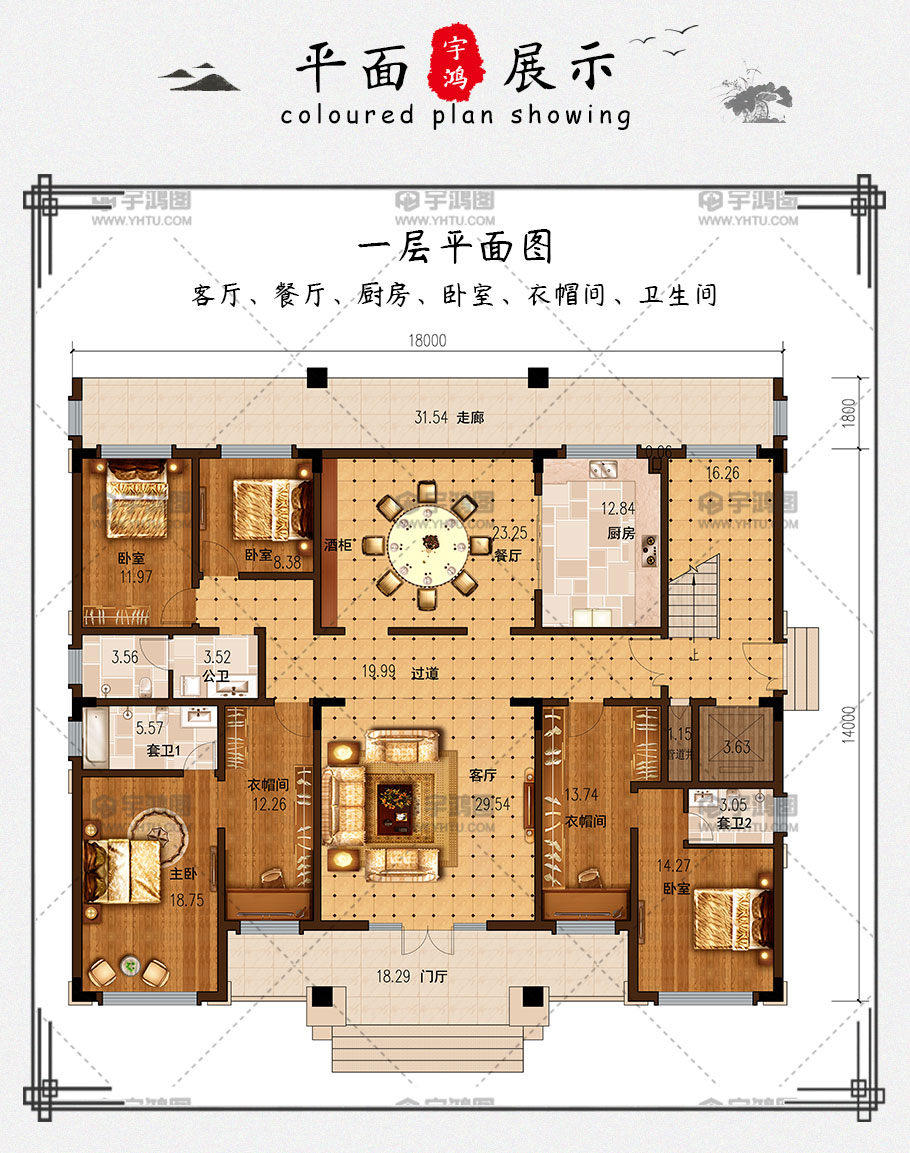 開間:18米 | 進深:15.8米 | 占地面積:233.7平方米 | 建筑面積:1021平方米 |