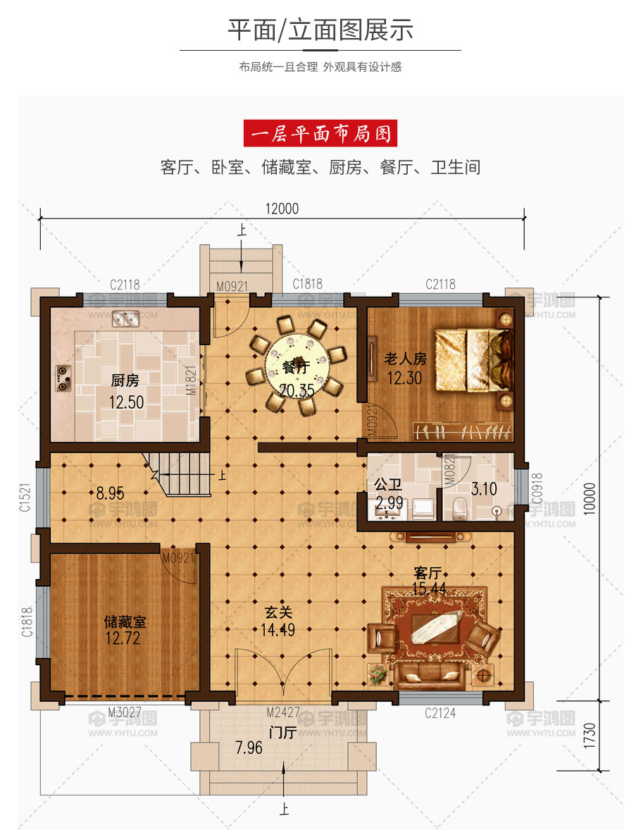 開間:12米 | 進深:11.73米 | 占地面積:120平方米 | 建筑面積:344平方米 |