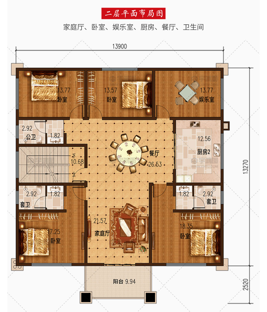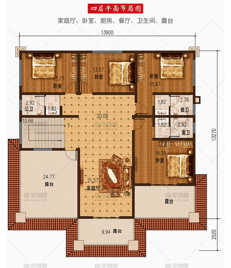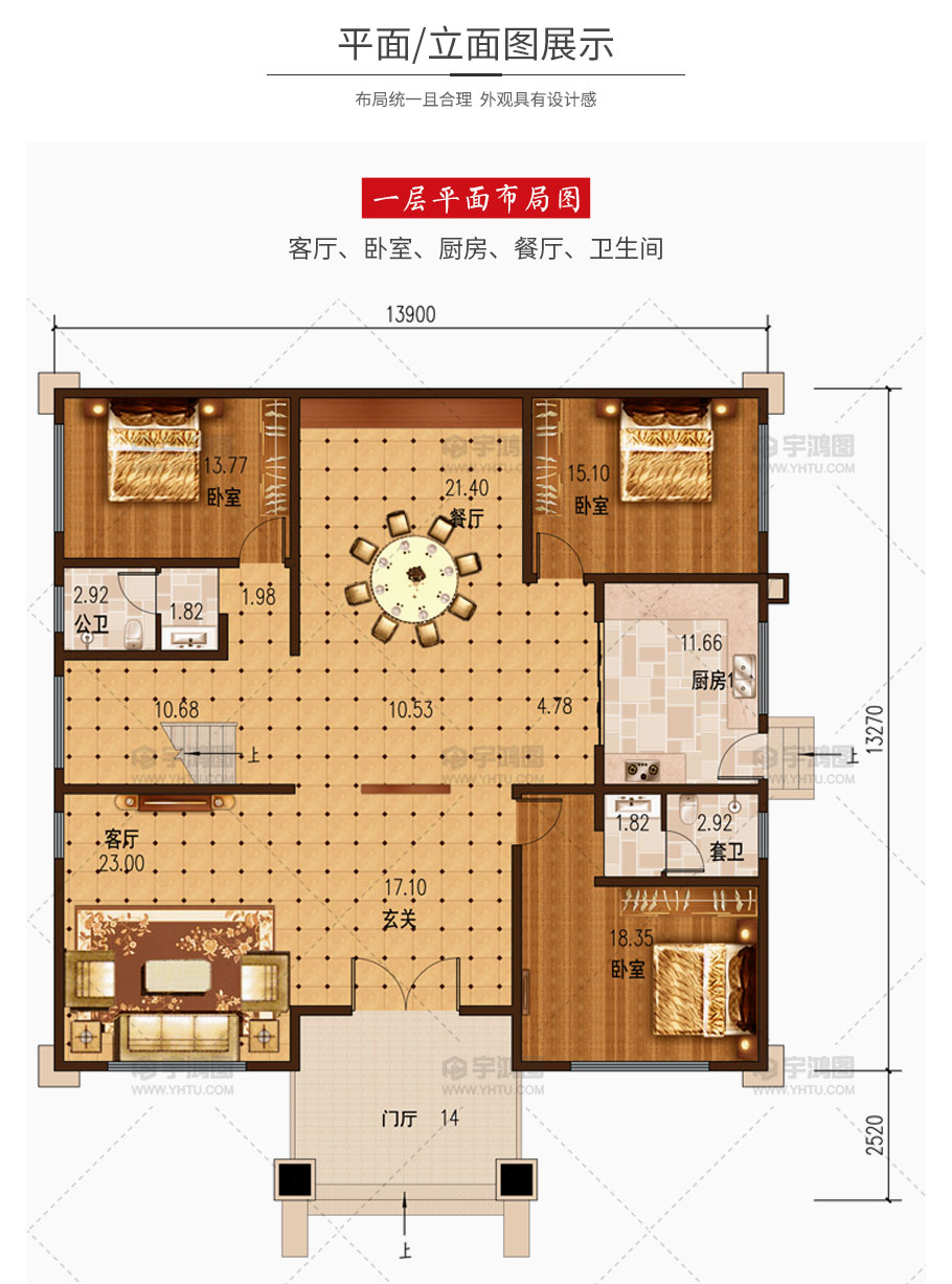開(kāi)間:13.9米 | 進(jìn)深:15.79米 | 占地面積:184.5平方米 | 建筑面積:715.4平方米 |