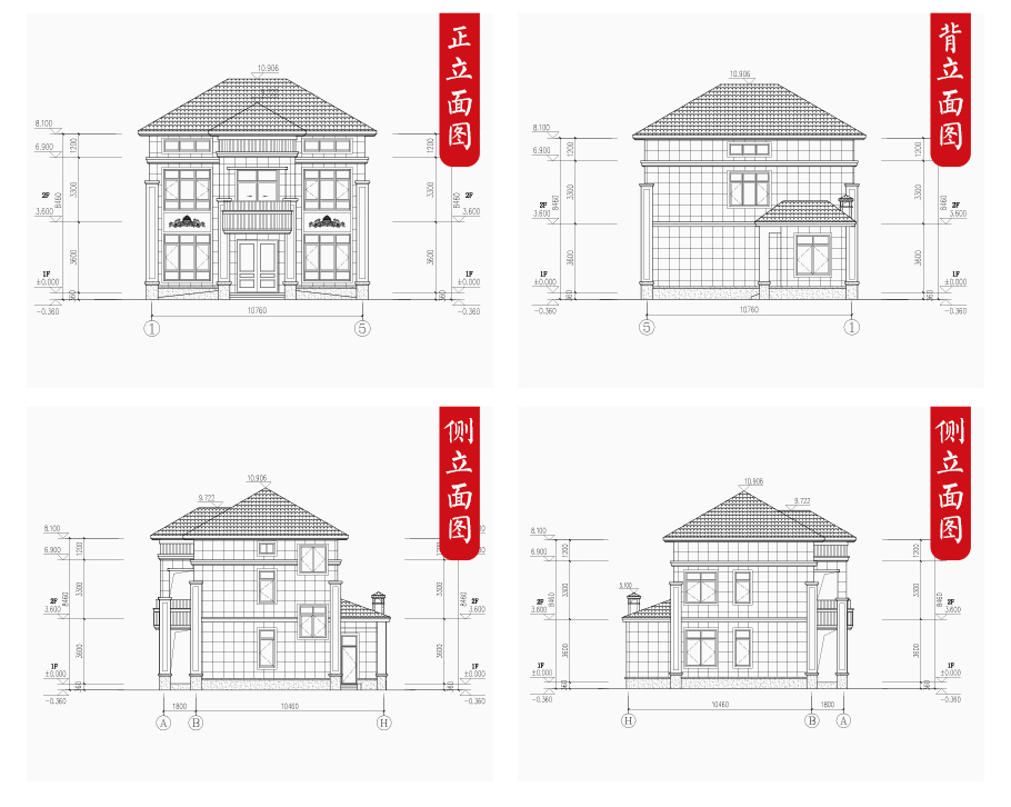 建筑圖: 建筑平面圖:一層平面圖,二層平面圖; 建筑立面圖:東立面圖,西立面圖,南立面圖,北立面圖,剖面圖; 大樣圖:樓梯詳圖,細部大樣,門窗大樣