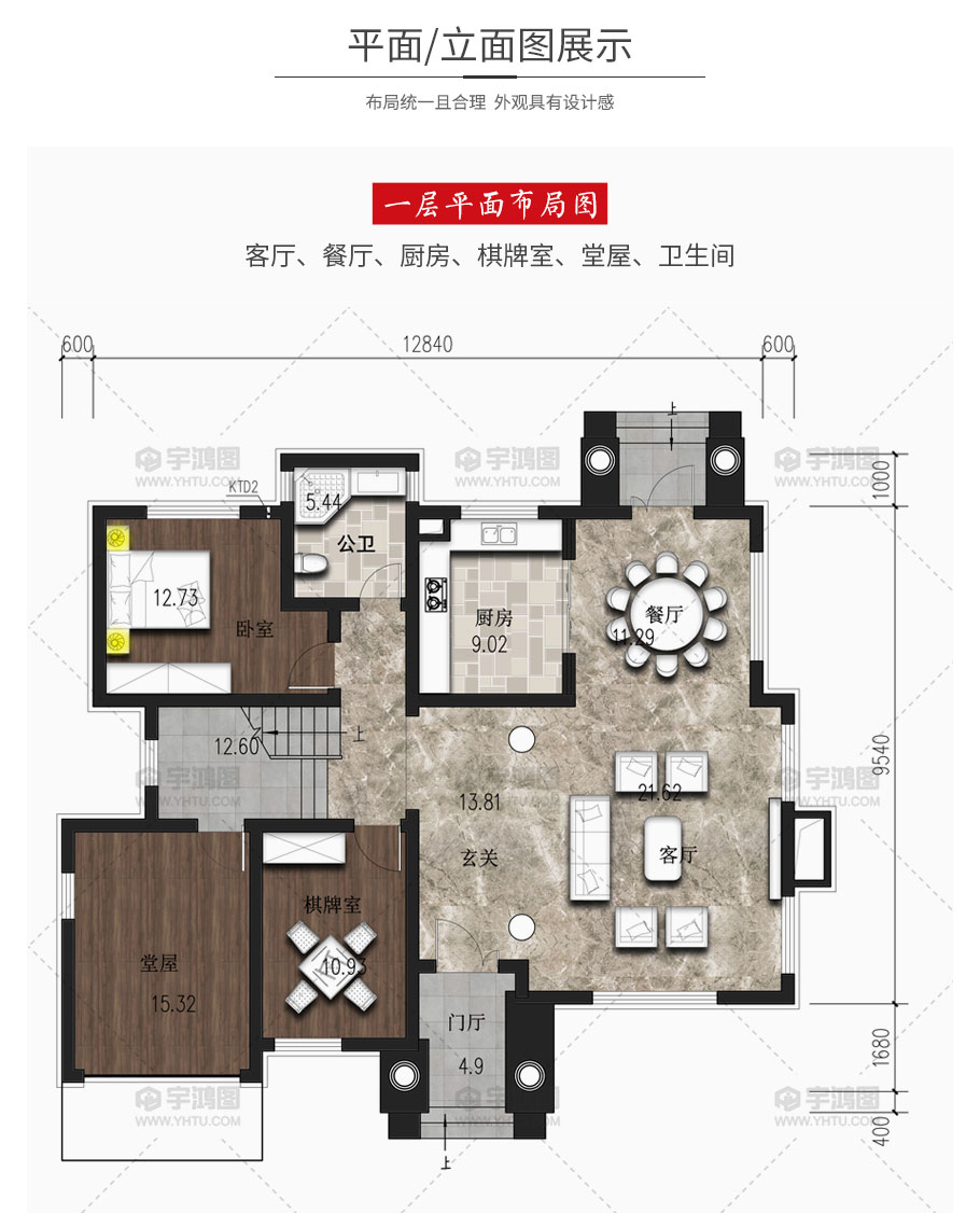 開間:14.04米 | 進深:12.62米 | 占地面積:136平方米 | 建筑面積:302平方米 |