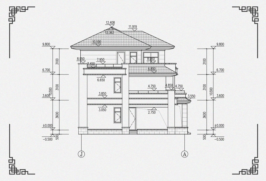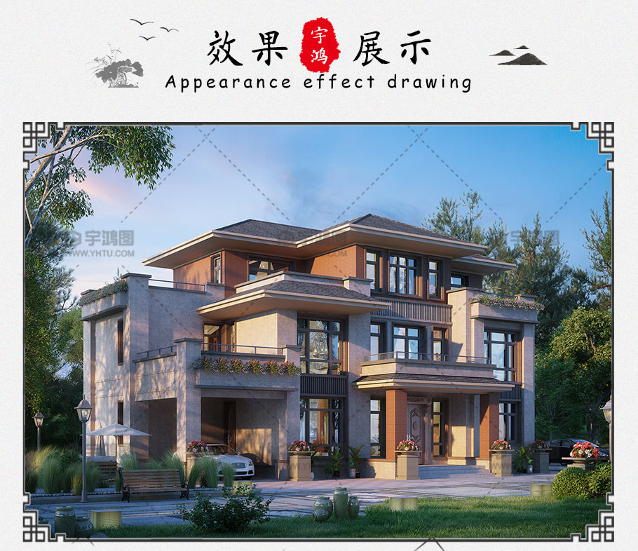 風格:中式 | 層數:三層 | 結構形式:框架結構 | 圖紙編號:YH-A-3139 |