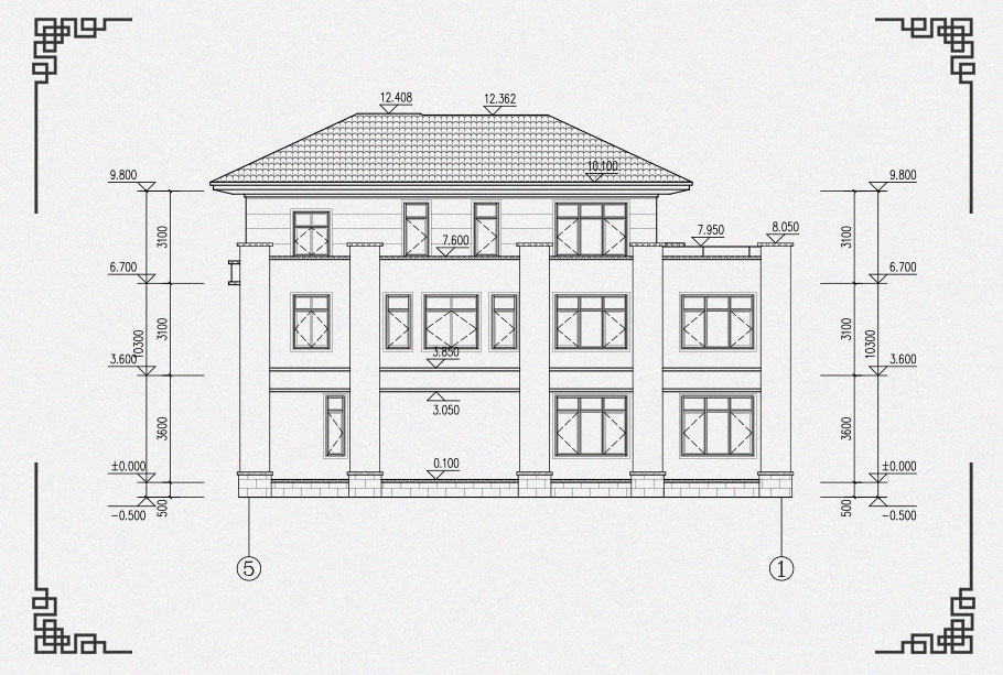 結構圖: | 柱施工圖:基礎平面圖,一層柱平面圖,二層柱平面圖,三層柱平面圖,屋頂柱平面圖; 梁施工圖:一層梁平法施工圖,二層梁平法施工圖,三層梁平法施工圖,頂層梁平法施工圖; 板施工圖:層板平法施工圖,二層板平法施工圖,三層板平法施工圖,屋頂層板平法施工圖 詳圖:樓梯平面,樓梯剖面圖; 其他:坡屋面施工說明圖一,坡屋面施工說明圖二,坡屋面施工說明圖三 |