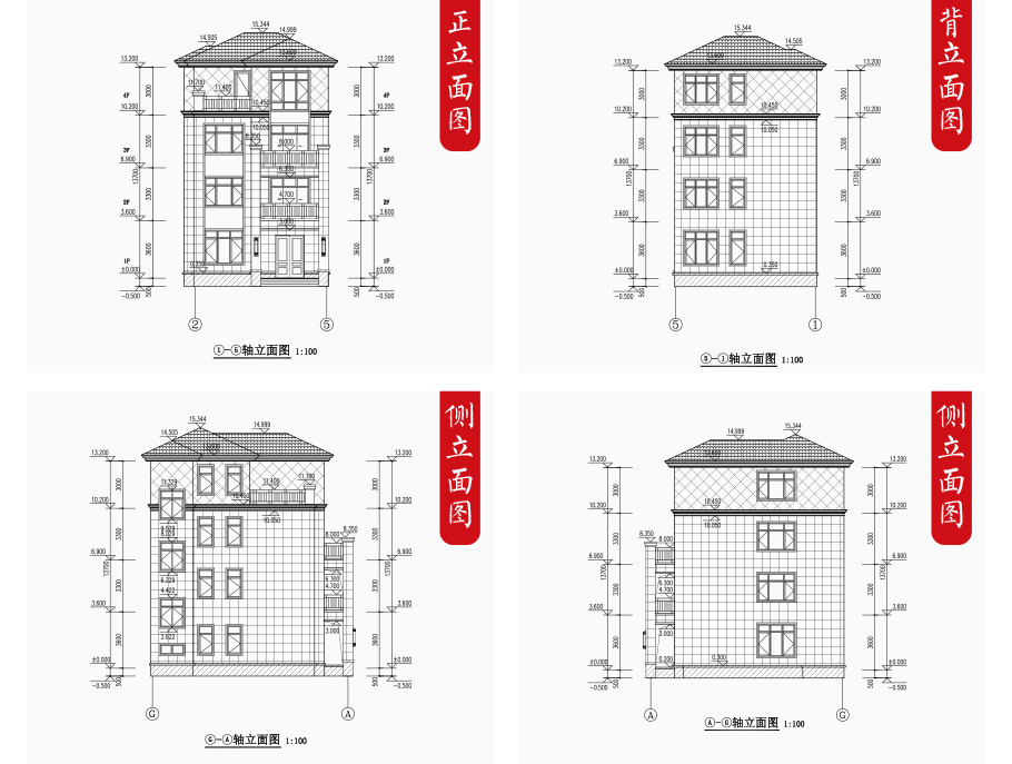 建筑圖: | 建筑平面圖:一層平面圖,二層平面圖,三層平面圖,四層平面圖; 建筑立面圖:東立面圖,西立面圖,南立面圖,北立面圖,剖面圖; 大樣圖:樓梯詳圖,細(xì)部大樣,門窗大樣 |