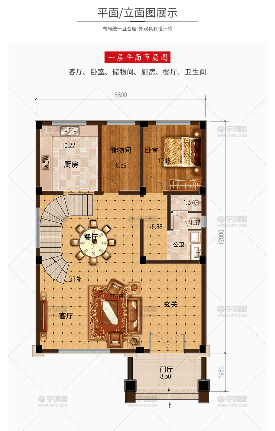 開間:8.8米 | 進深:13.98米 | 占地面積:105.6平方米 | 建筑面積:279平方米 |