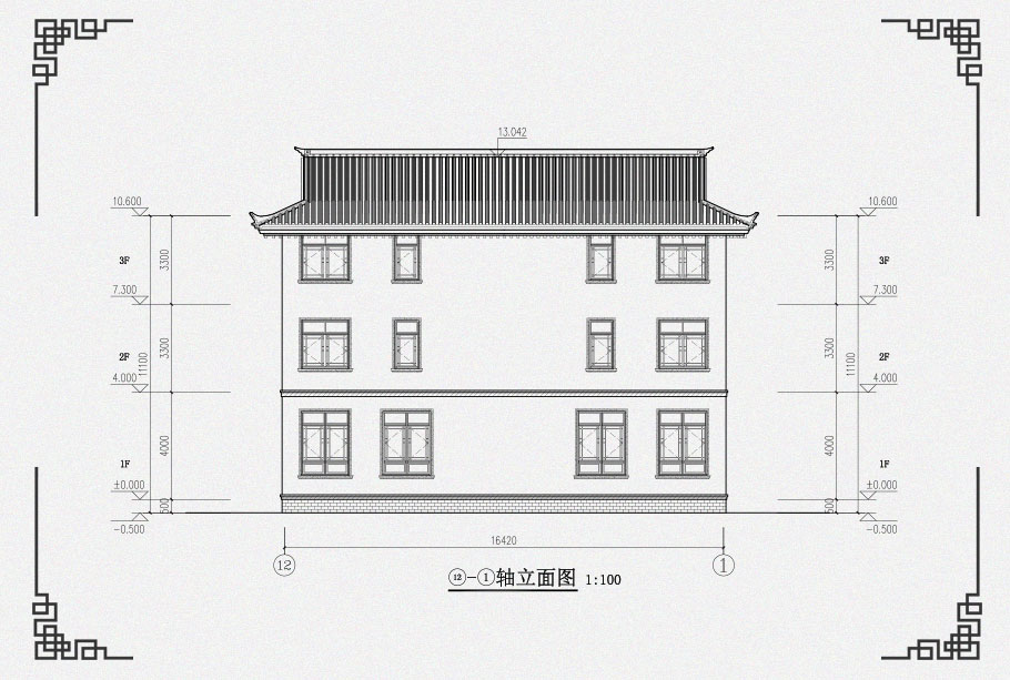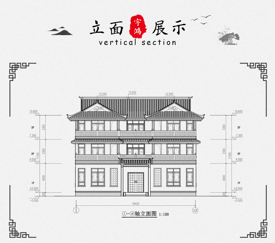 建筑立面圖:東立面圖,西立面圖,南立面圖,北立面圖,剖面圖;