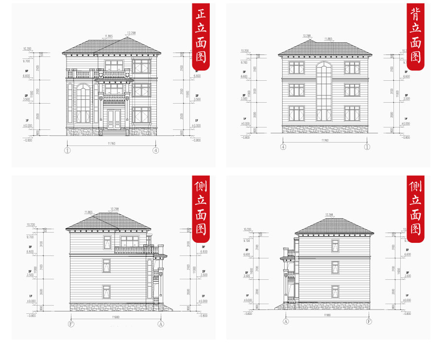 建筑圖: | 建筑平面圖:一層平面圖,二層平面圖,三層平面圖; 建筑立面圖:東立面圖,西立面圖,南立面圖,北立面圖,剖面圖; 大樣圖:樓梯詳圖,細部大樣,門窗大樣 |