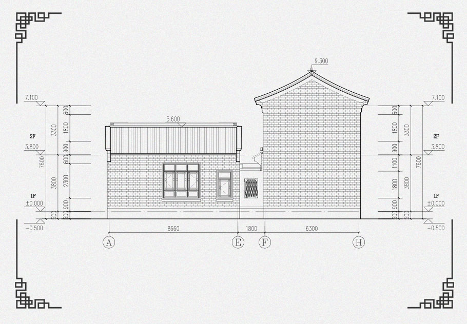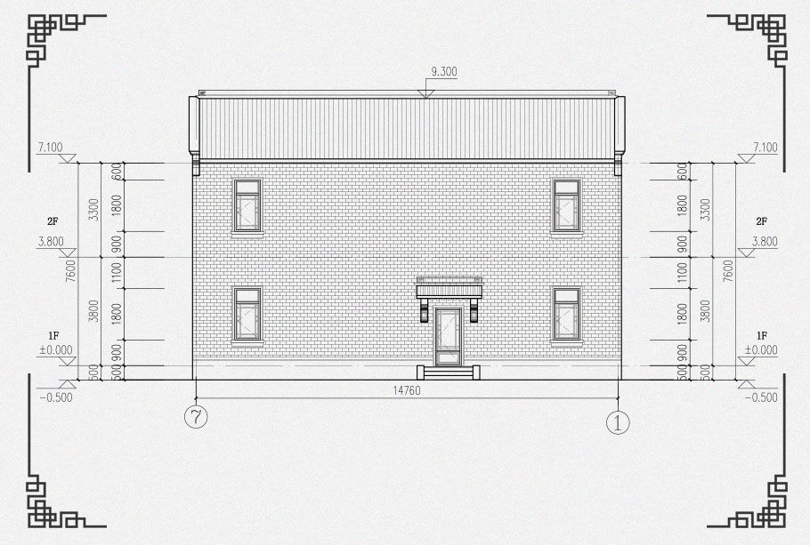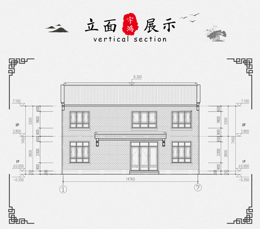 建筑立面圖:東立面圖,西立面圖,南立面圖,北立面圖,剖面圖;